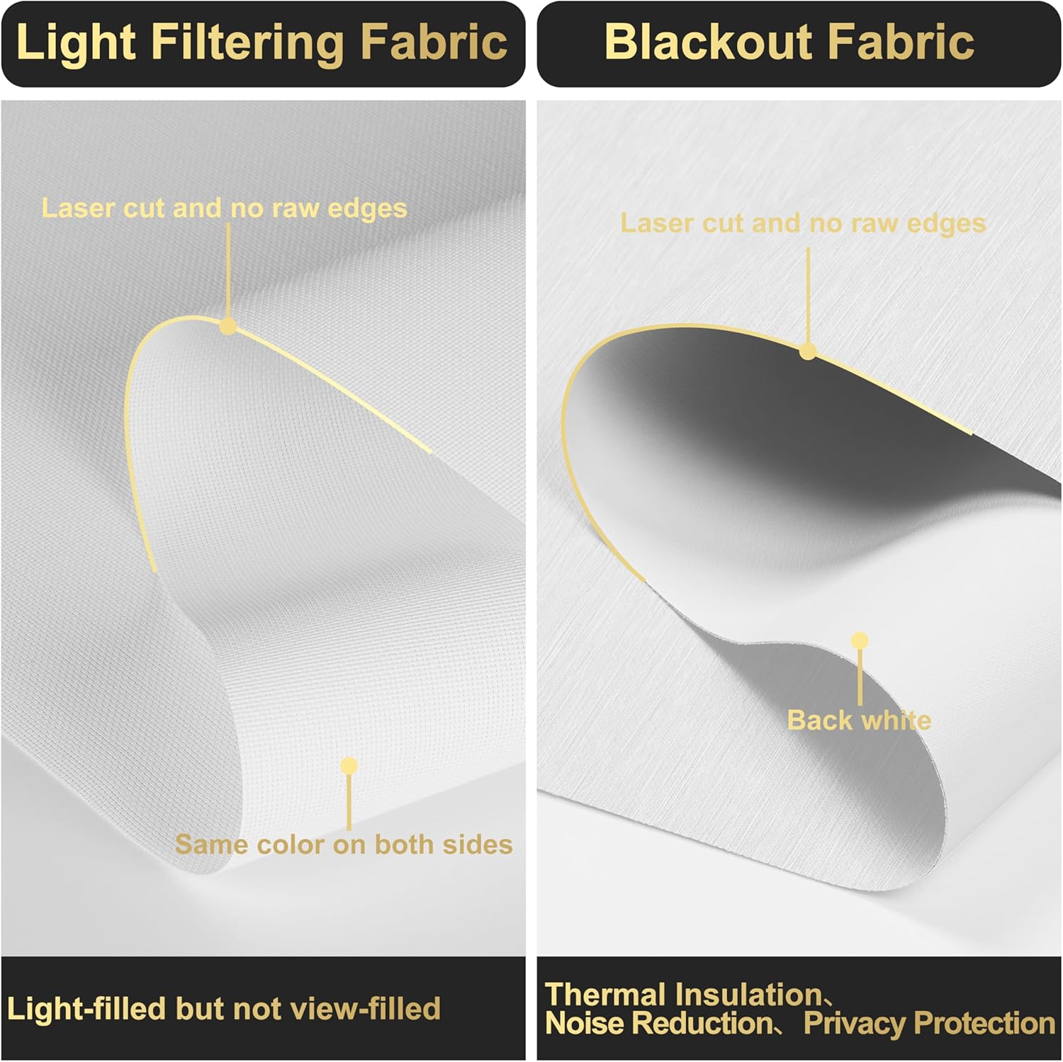 - MULTI-PURPOSE SHADE:Dual roller shades consisting of blackout and light filtering shades, blackout roller shade can 100% blackout,thermal insulation and UV Protection,so that you can experience quiet and comfort of the night during daytime;Light filtering roller shade allow light to filter into your room,and no glare,soft diffused light allow for perfect balance of light and darkness,and also enhances overall aesthetics of your home,allowing for a romantic and comfortable living environment.
