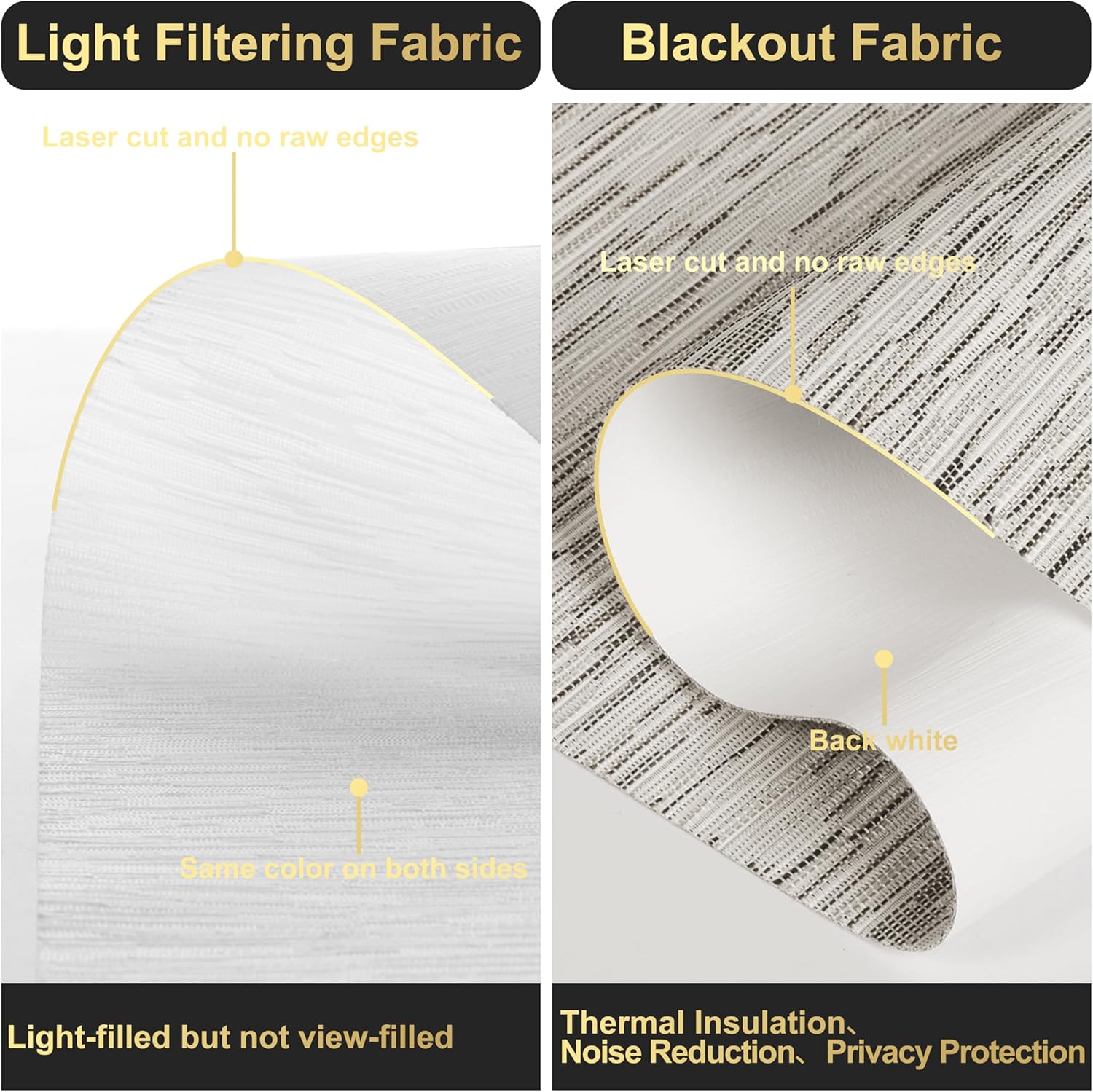 - MULTI-PURPOSE SHADE:Dual roller shades consisting of blackout and light filtering shades, blackout roller shade can 100% blackout,thermal insulation and UV Protection,so that you can experience quiet and comfort of the night during daytime;Light filtering roller shade allow light to filter into your room,and no glare,soft diffused light allow for perfect balance of light and darkness,and also enhances overall aesthetics of your home,allowing for a romantic and comfortable living environment.