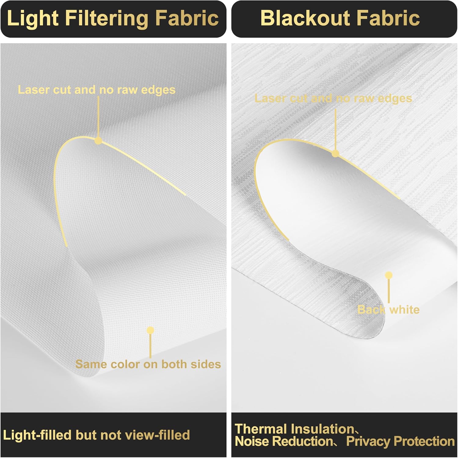 - MULTI-PURPOSE SHADE:Dual roller shades consisting of blackout and light filtering shades, blackout roller shade can 100% blackout,thermal insulation and UV Protection,so that you can experience quiet and comfort of the night during daytime;Light filtering roller shade allow light to filter into your room,and no glare,soft diffused light allow for perfect balance of light and darkness,and also enhances overall aesthetics of your home,allowing for a romantic and comfortable living environment.