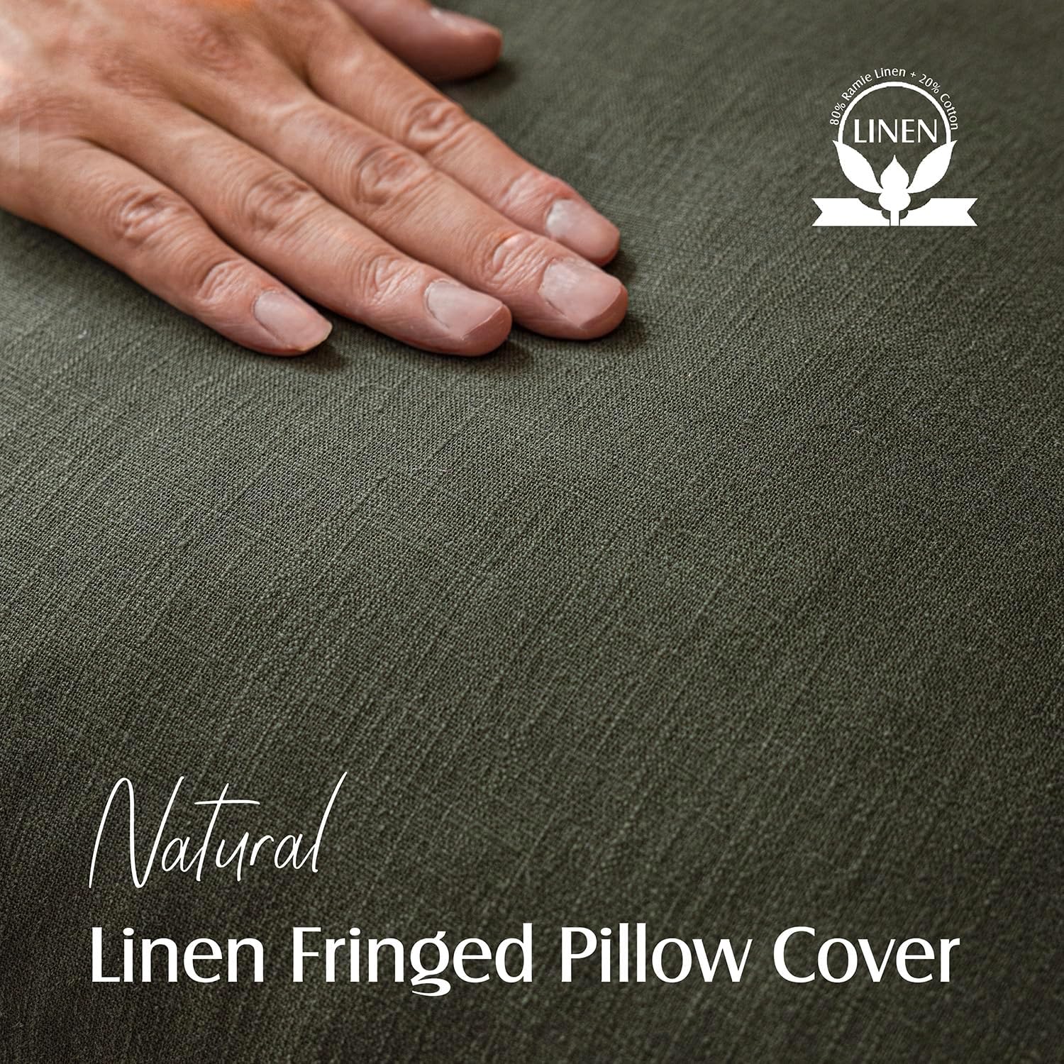 Foindtower Set of 2 Decorative Linen Fringe Throw Pillow Covers Farmhouse Cushion Cover with Tassels Accent Pillowcase for Couch Bed Sofa Living Room Home Bedroom Decor,12×24 Inch,Dark Olive Green