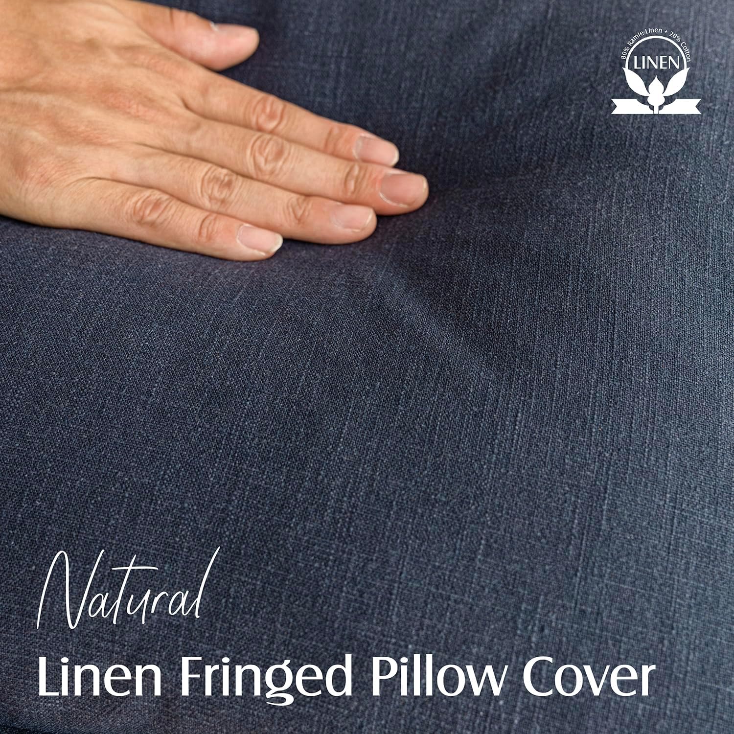 Foindtower Set of 2 Decorative Linen Fringe Throw Pillow Covers Boho Farmhouse Cushion Cover with Tassels Accent Pillowcase for Couch Bed Sofa Living Room Home Bedroom Decor, 12×24 Inch, Navy Blue