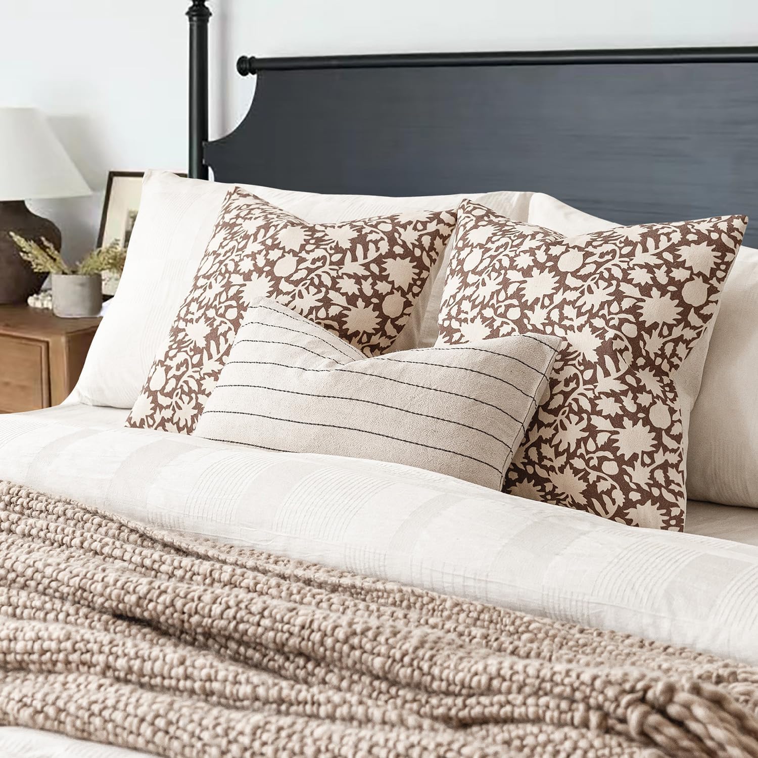Foindtower Set of 2 Decorative Neutral Floral Lumbar Throw Pillow Covers Accent Farmhouse Cushion Covers Boho Vintage Pillowcase for Couch Sofa Bedroom Living Room Home Decor Outdoor,12×20 Inch,Brown