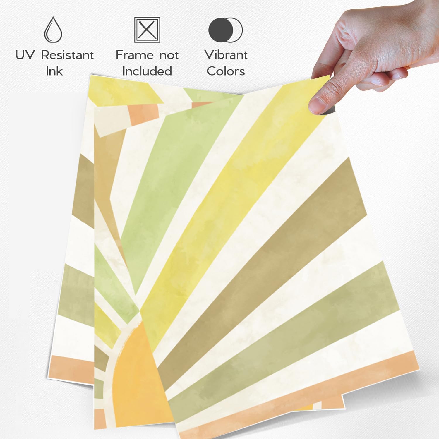 - Sun Rising Wall Decor for Any Room: Perfect for living rooms, bedrooms, offices, entryways, nurseries, playrooms, and bathrooms, sunshine geometric line paintings enhances any space with a calming, artistic atmosphere. Whether placed above the bed, behind the sofa, in a reading nook, or in the kitchen, it creates a warm and inviting ambiance