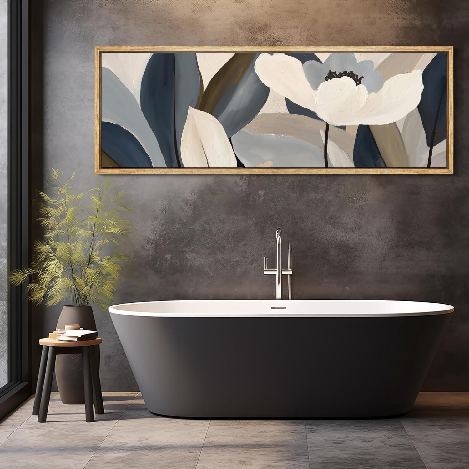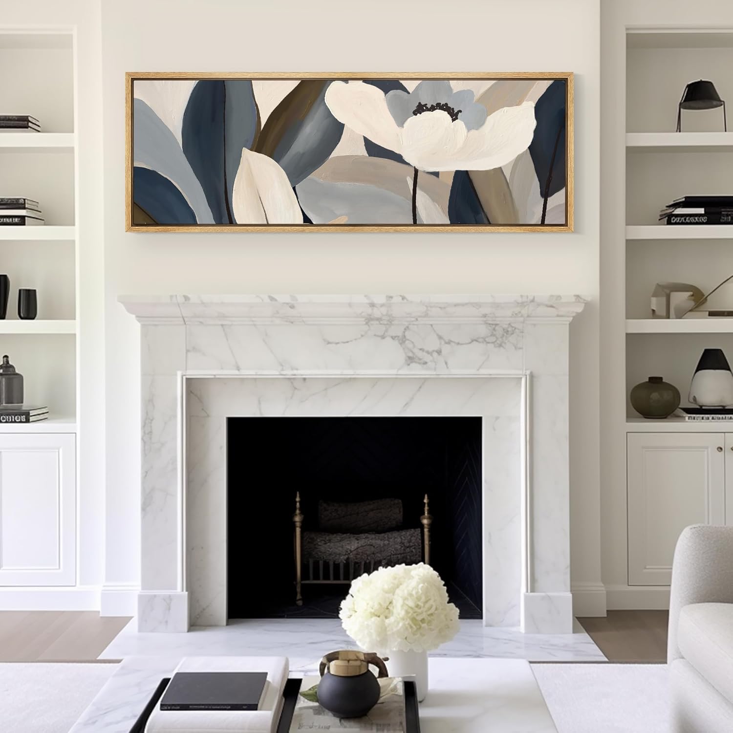 MUDECOR Large Framed Canvas Print Wall Art Neutral Toned Floral Abstract Antique Retro Fine Art Illustrations Decorative Colorful for Bedroom - 60"x20"