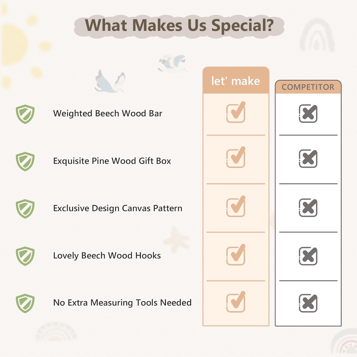- 🌈𝑪𝒉𝒂𝒓𝒎𝒊𝒏𝒈 𝑫𝒆𝒔𝒊𝒈𝒏 𝑭𝒐𝒓 𝑾𝒂𝒍𝒍: Adorned With Hand-Painted Rainbow And Eucalyptus Designs On Durable, Waterproof Canvas, Matched With Rainbow/Bird Beechwood Hooks. The Soothing, Neutral Color Make Our Growth Chart Perfect Fits Both Little Boys And Girls Nursery Decor, Adding A Warm Touch To Your Home While Complementing Bohemian-Style Decor.