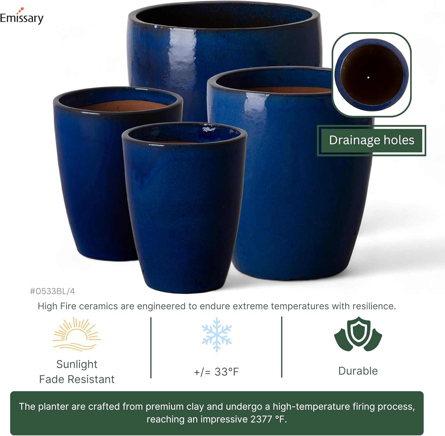 - Classic Blue Color with a Glossy Glaze Finish: Enhances Indoor and Outdoor Spaces with an Elegant Sophistication