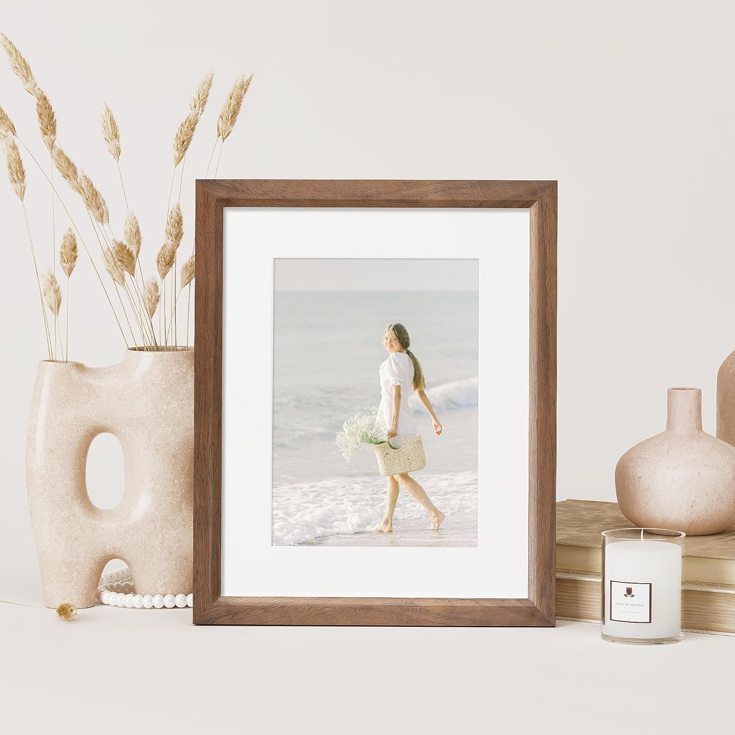 - High-Quality Solid Walnut Wood Frame: The picture frame is made of 100% solid walnut wood, showcasing its natural wood grains for an authentic look. This premium material ensures durability and adds a touch of elegance to any space. It's an excellent way to add color and personality to space and make memories last a lifetime.