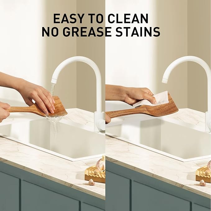 - Easy to Clean and Maintain: Cleaning our wooden utensils is a breeze! Simply hand wash them with mild soap and warm water, then let them air dry. To maintain their natural beauty and extend their lifespan, periodically apply food-grade mineral oil to keep the wood moisturized