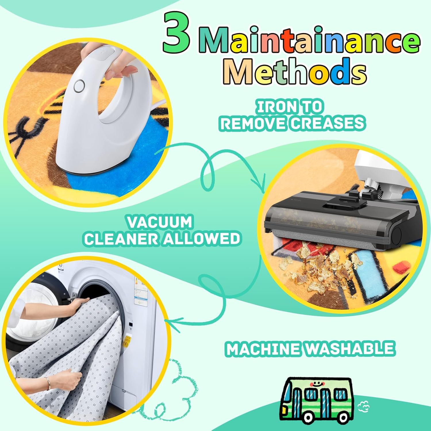 - [Machine Washable Kids Play Rug]: This car rug for kids toy cars measures 3 x 5 feet/36*60 inches. 0.4'' thick. Our mat is easy to clean by vacuum or machine. Perfect bedroom rug, living room rug, and playroom rug.