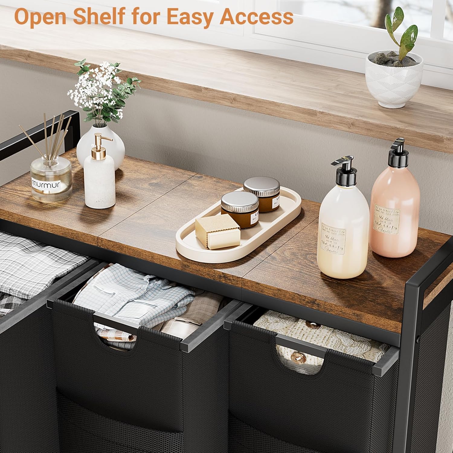 Lulive Laundry Hamper, Laundry Basket Organizer with 3 Pull-Out Removable Bags & Large Top Shelf, 3 × 12.5 Gal (142L) Freestanding Laundry Sorter 3 Sections for Laundry Room, Bathroom and Dorm