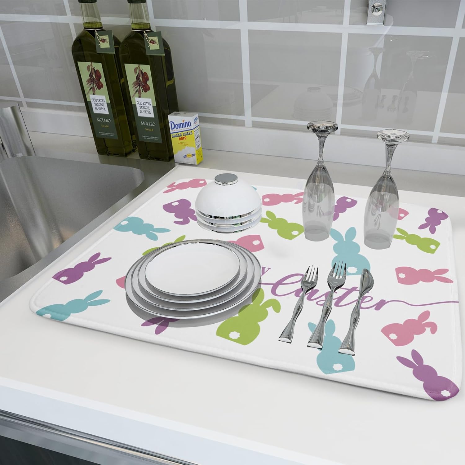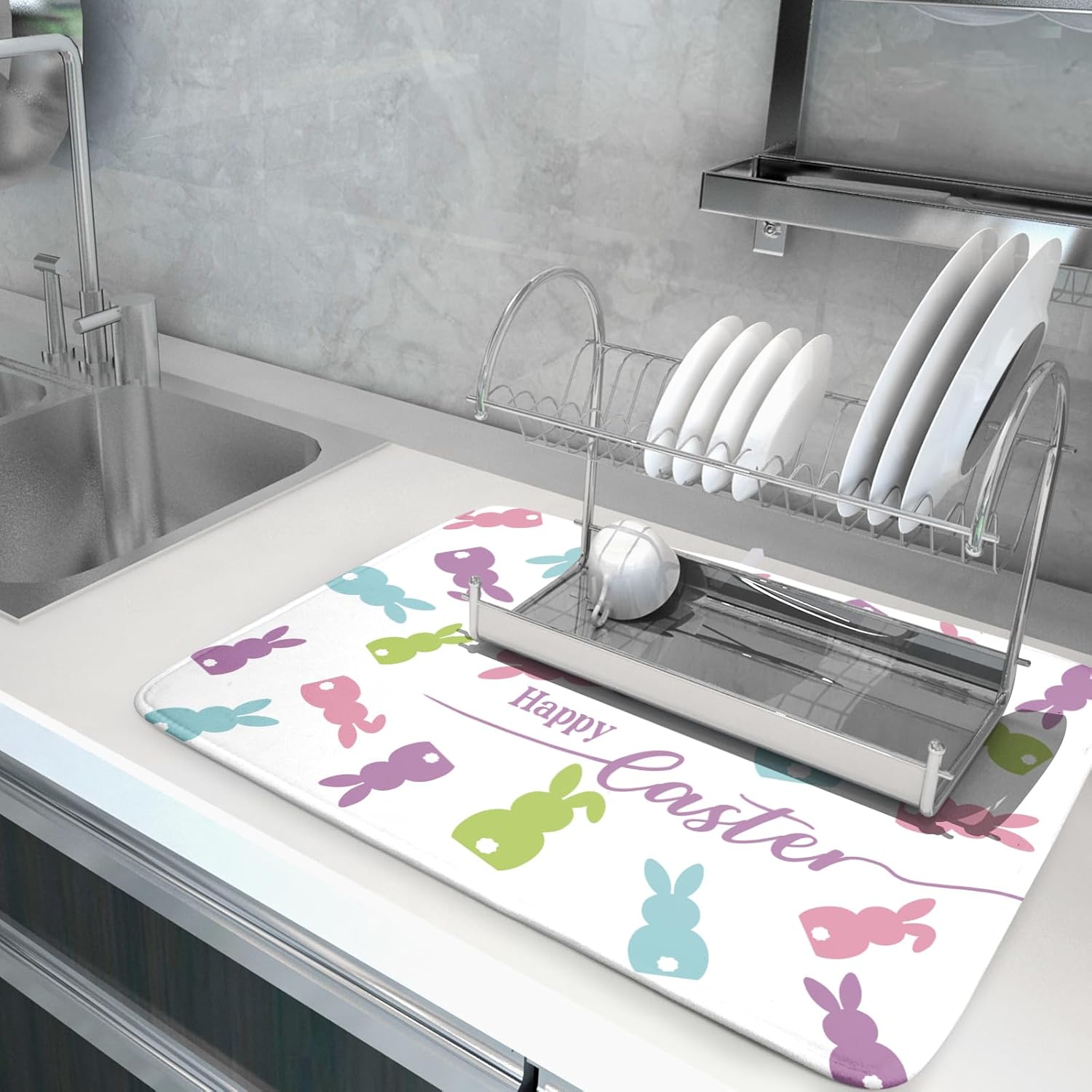 - 【Perfect Size】This Easter dish drying mat measures 18 x 24 Inch. Fits most kitchen countertops,while providing a smart,sharp look.