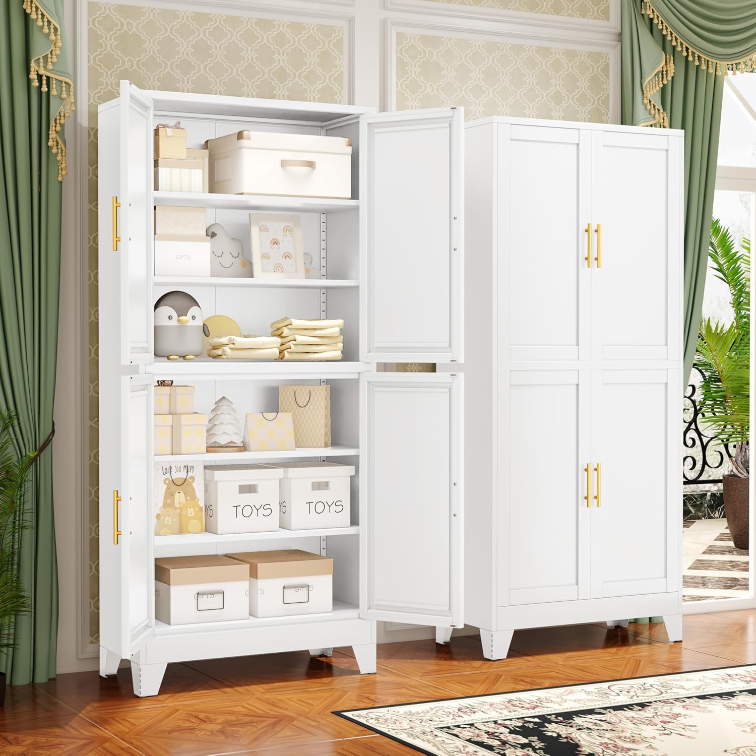 - 『♕Multifunctional Cabinet』Metal pantry are perfect for various environments and are an ideal choice for home offices, bedroom, livingroom, kitchen, study and more. You can use it as a pantry cabinet, food cabinet, kitchen cabinet, kitchen cupboard, utility cabinet, laundry room cabinets, bathroom cabinet, bedroom wardrobe, bookcase, tool cabinet, file cabinet, appliance cabinet, etc. Of course, you can also use it for any place you want to place it