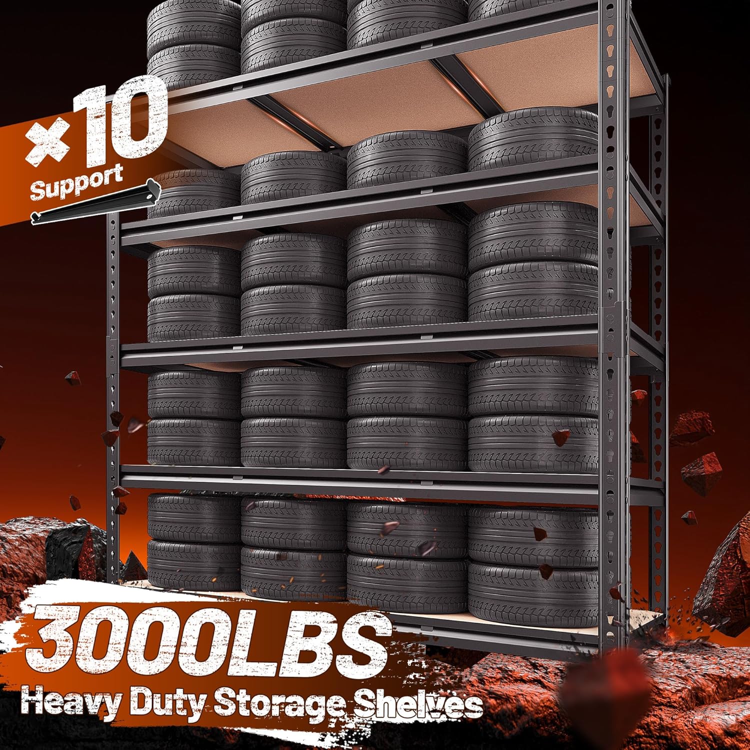 - Special Feature : 48.2 super wider garage shelving, 24’’D deepened storage shelves,3000LBS heavy duty shelving with 10 big ribs beneath ,5 Tier garage shelves72’’H garage storage shelves,adjustable storage rack, DIY shelving units, Space Saving, Can be assembled into (2) racks (all hardware included), Water Resistant 48.2 super wider garage shelving, 24’’D deepened storage shelves,3000LBS heavy duty shelving with 10 big ribs beneath ,5 Tier garage shelves72’’H garage storage shelve… See more