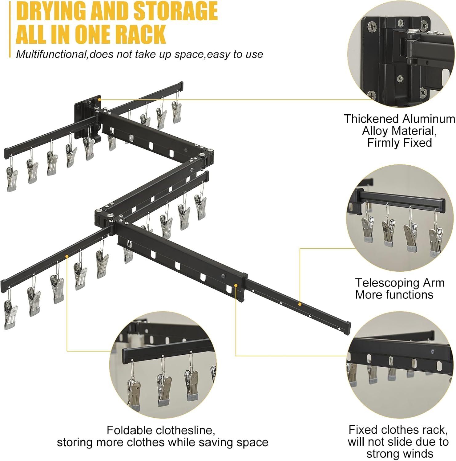- STURDY AND DURABLE: This drying rack clothes has holes for easy installation; the drying rack is sturdy and durable and can withstand greater weight; the wall-mounted drying rack can hang a large number of clothes at a time.
