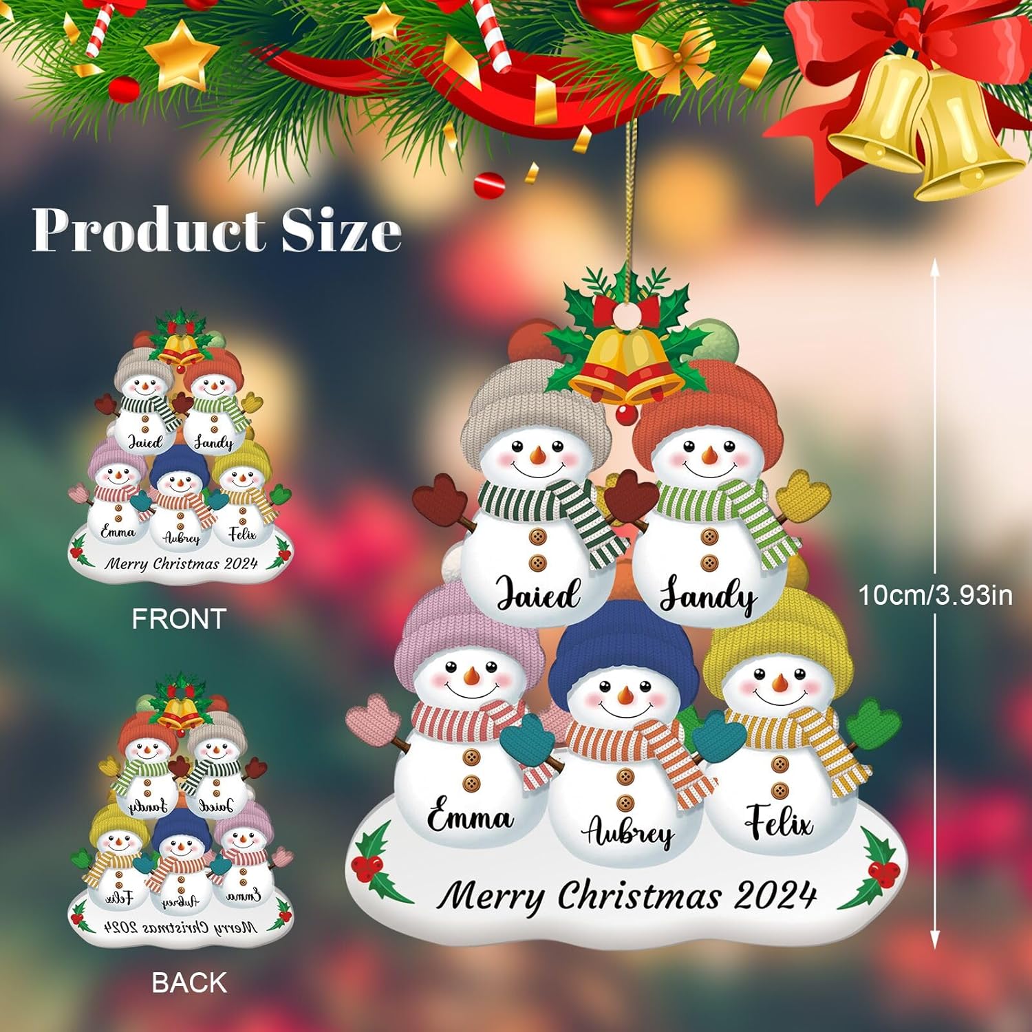 - Charming Snowman Ornaments – Our snowman Ornaments can be customized with 1-8 family members' names, each wearing a different colored hat, perfect for representing family members or friends. At 3.97 inches tall and 3.15 width, these ornaments are perfectly sized for your holiday display.
