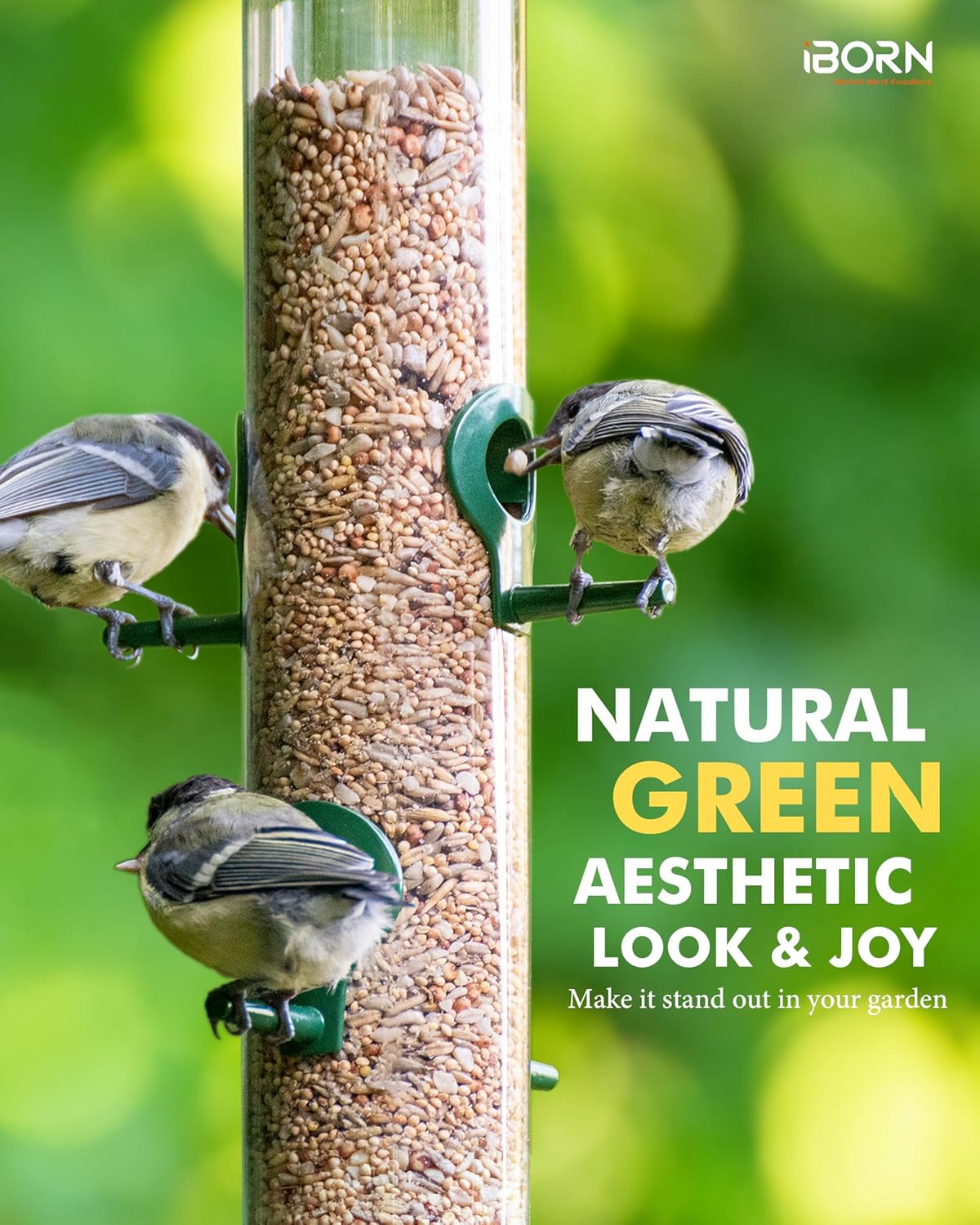 - 【Green Power Coated,No Color Fading, Great for all the year round feeding】Wear and Worn, Never Rust. All Metal top, base, feeding ports, perches, green power-coat,rust resistant, robust construction to sustain all weather days. It features royal-stylistic green outlook, traditional design inviting more feather birds to your garden, add more liveness to your garden life.