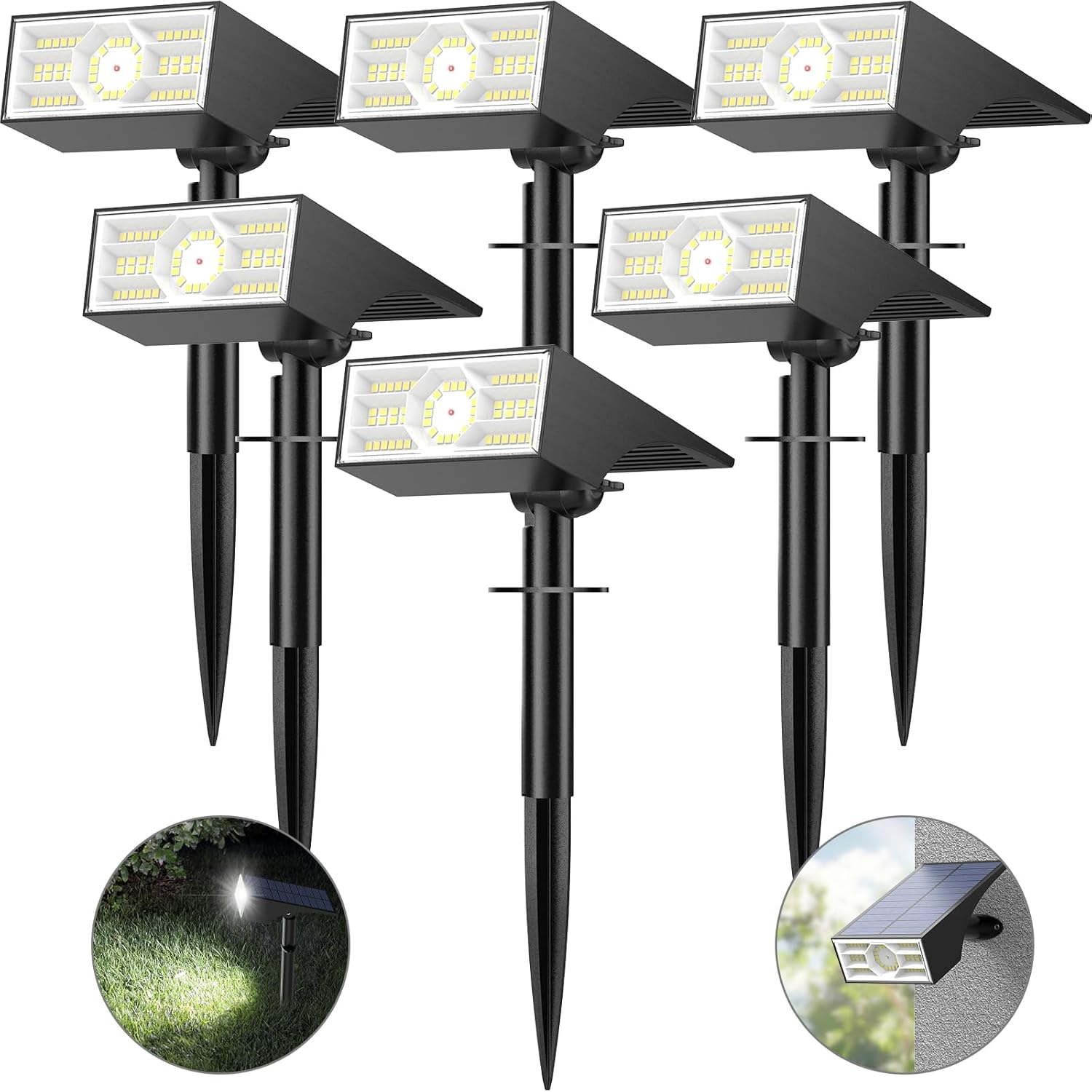 Solar Spot Lights Outdoor, 6 Pack Outdoor Solar Lights for Yard Waterproof, 4 Lighting Modes Solar Landscape Spotlights, Auto On/Off Solar Powered Flood Lights Garden Pathway (Cool White)