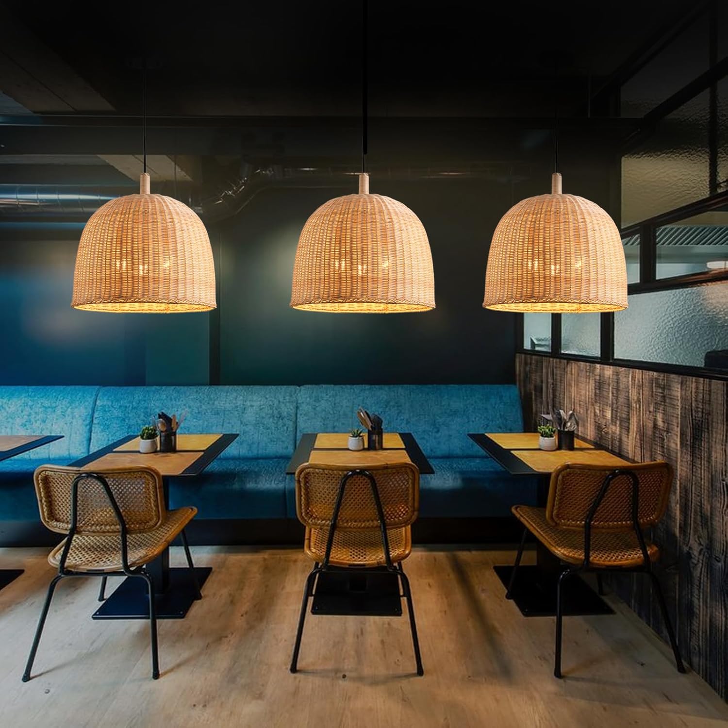 - 【 Light Size Bulb Requirement】3-Light rattan pendant light, Size D 45 *H 42 cm, D 17.72 * H 16.5". Voltage 110v-240v, Bulb socket and electric cord have passed the UL listed, which can ensure that you use them safely. US standard E26 base socket, maximum 60W, suitable for Incandescent, LED, halogen, CFL, etc.(Bulb Not included)