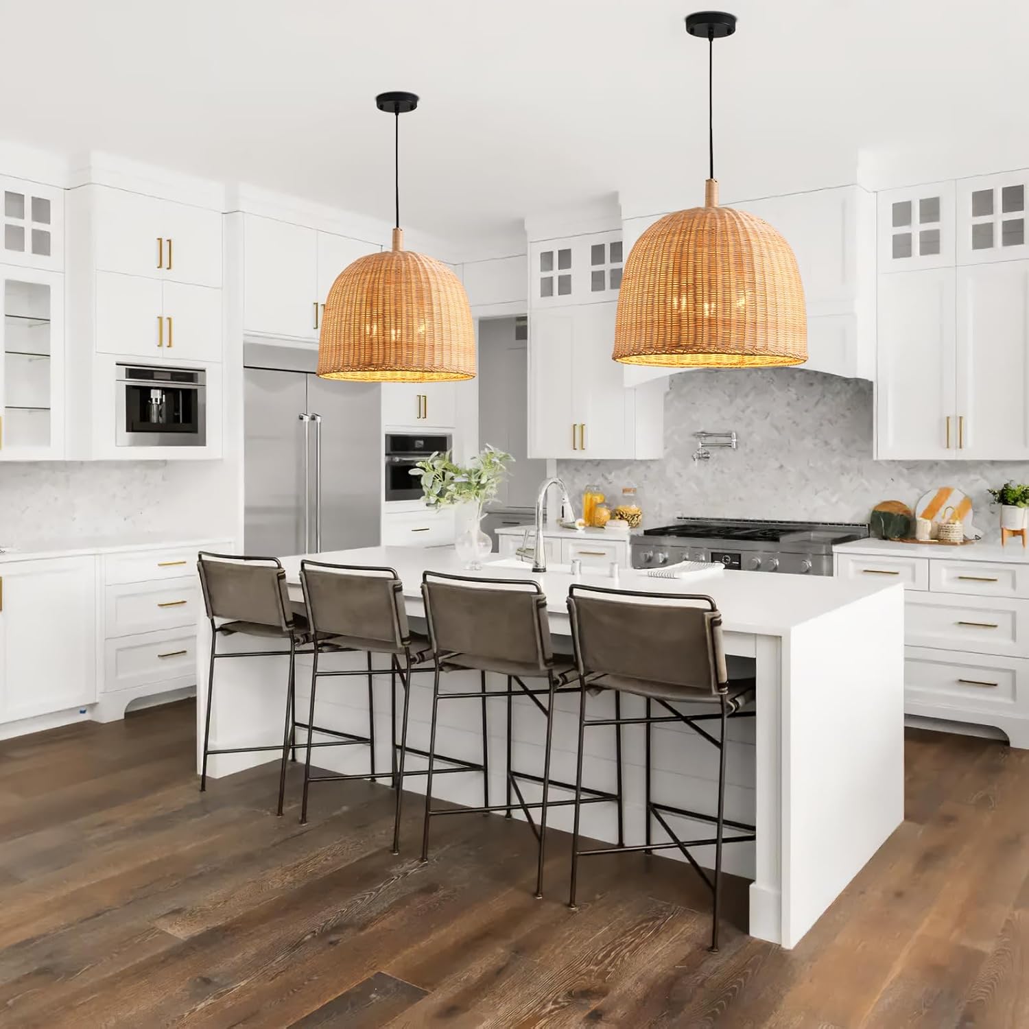 - 【Hand-Woven Rattan Chandelier Natural Material】Rattan craft is selected from the trees we grow , which undergoes various processing procedures. This Rattan craft is heat resistant, fade resistant, safe and healthy