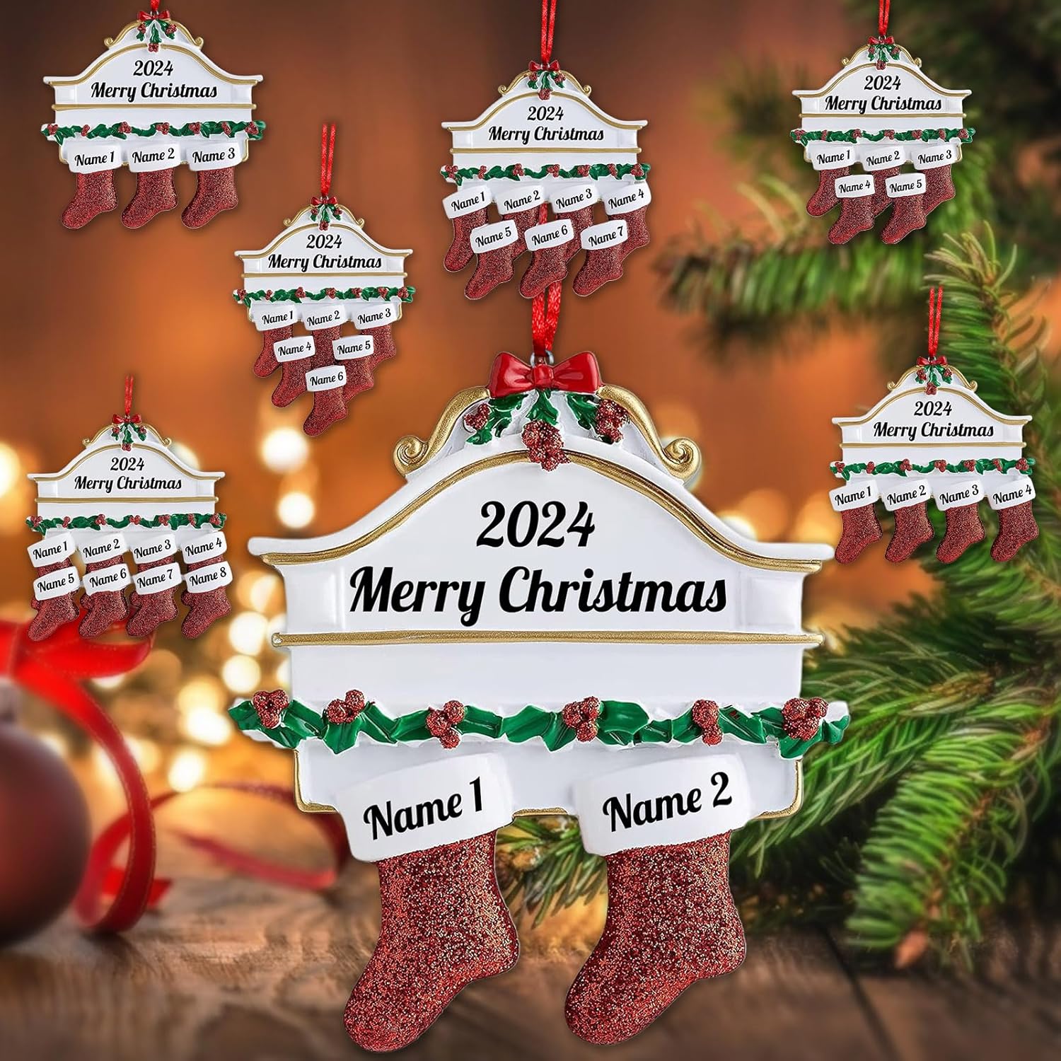 Amlion Personalized Ceramic Christmas Stocking Ornaments, Family of 2-8, Custom Names, Traditional Style, Christmas Occasion