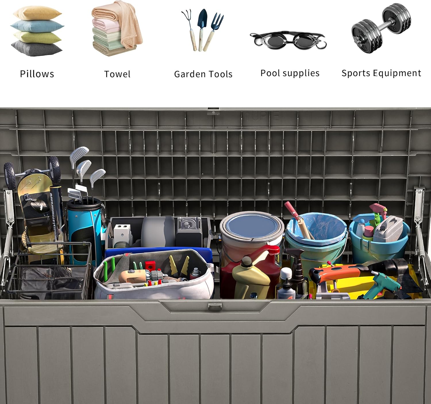 - Versatile and Secure: Our resin storage box is designed for both indoor or outdoor use, suitable for storing patio furniture cushions, gardening tools, pool accessories, and more; The deck box with lock design ensures your items stay safe and secure