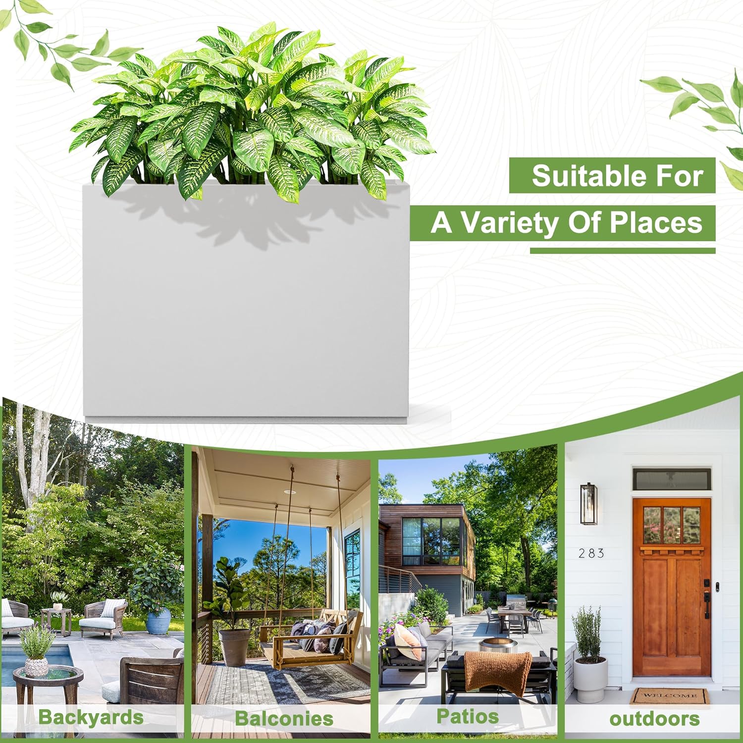 FENCY Metal Rectangular Planter Box Large Planters for Outdoor Plants, Tall Planters for Outdoor Plants with Drainage Holes, Rectangular Planters for Outdoor Plants (35.4" L x 9" W x 25.6" H,White)