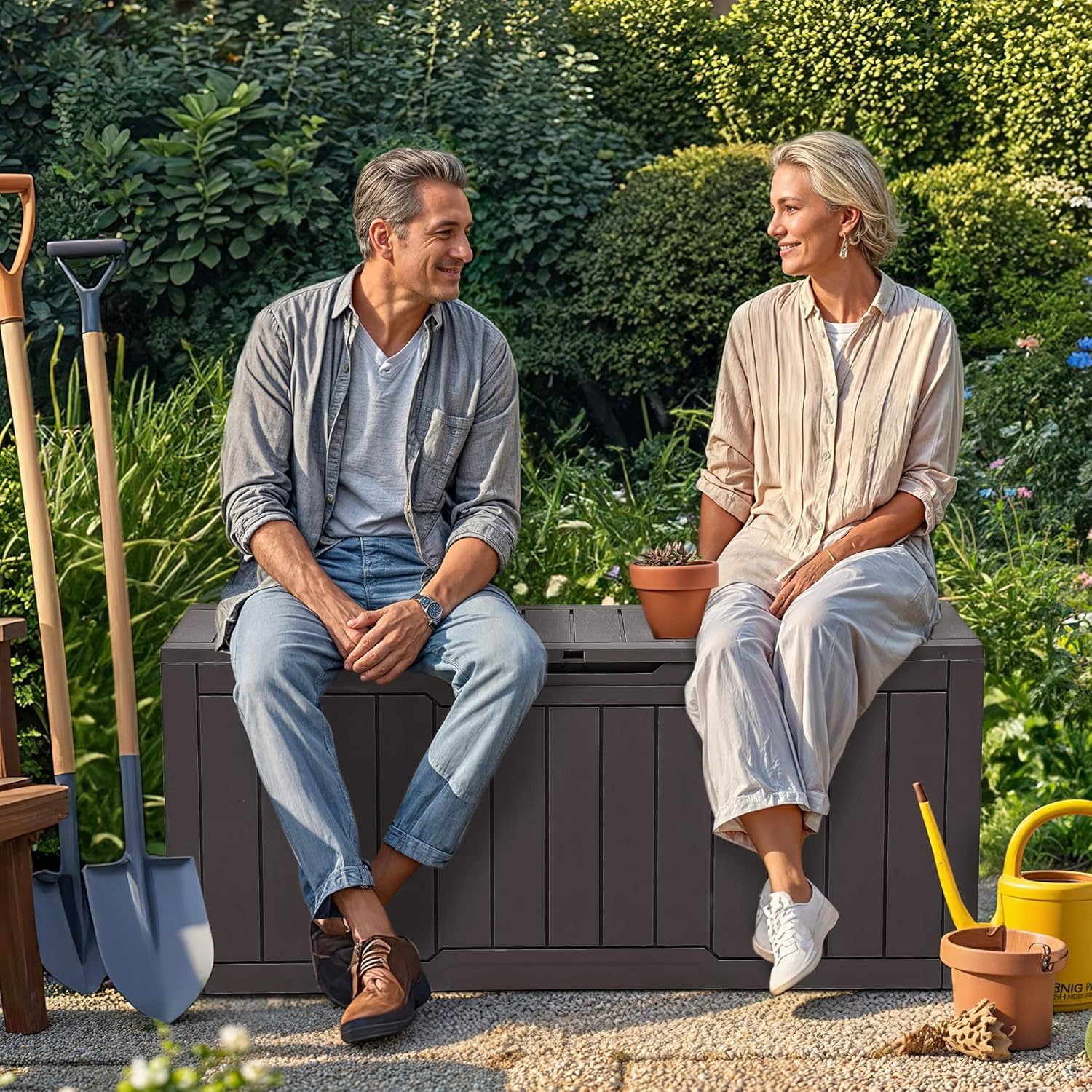 - Additional Seating Option: Need a quick seat? This versatile resin storage box works as a bench with a capacity of 485 pounds; Assemble it in just 15-30 minutes and marvel at the stylish wood-grain finish that effortlessly enhances any outdoor space
