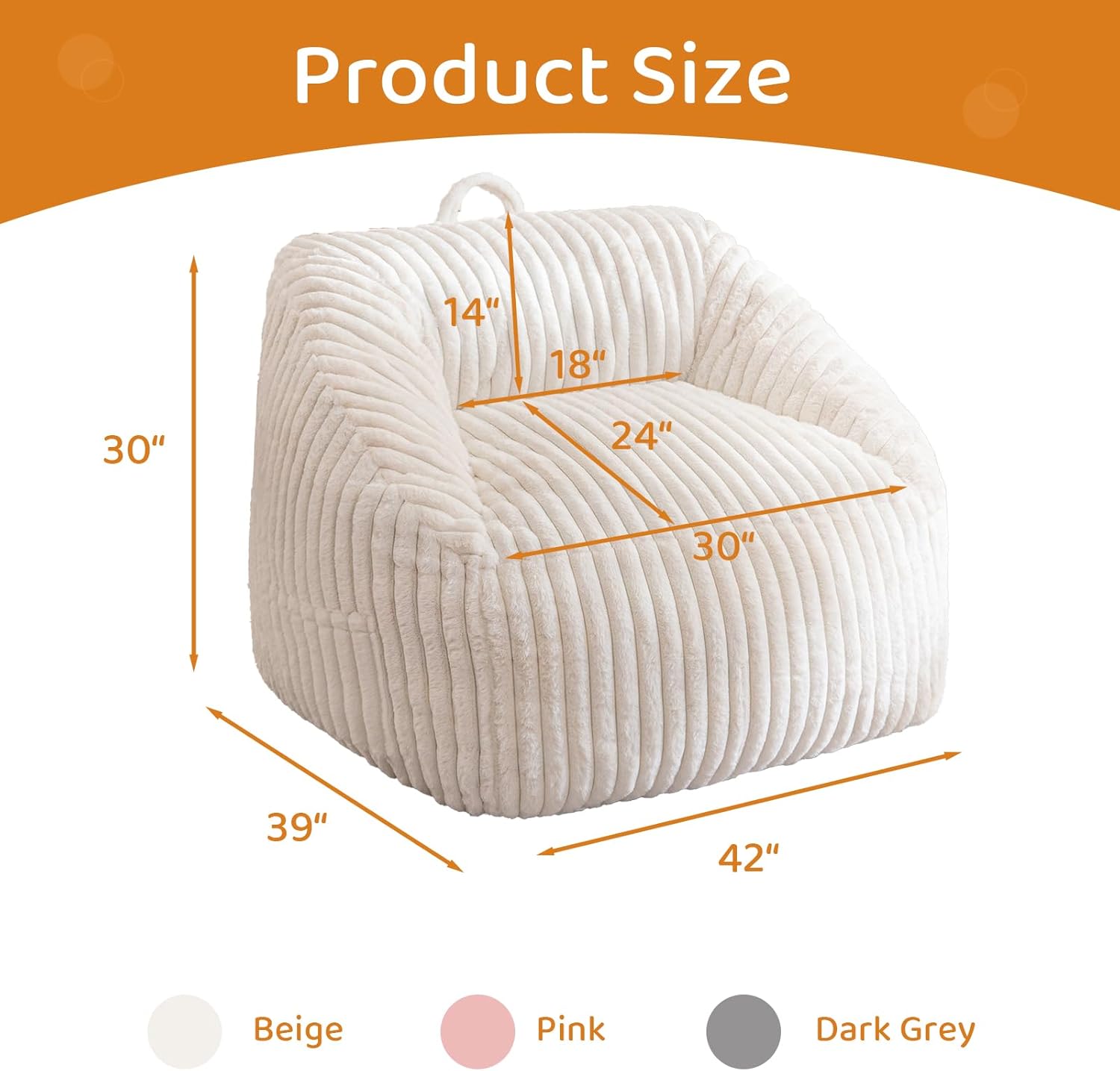 - No Assembly Required: This soft fur chair comes pre-filled with padding, no need to fill it yourself. Ships vacuum compressed and will expand when opened. Simply cut open the package, tap and shake to encourage spring back, and wait approximately 48 hours for it to return to its original shape. Then it's time for you and your family to enjoy happy hour!