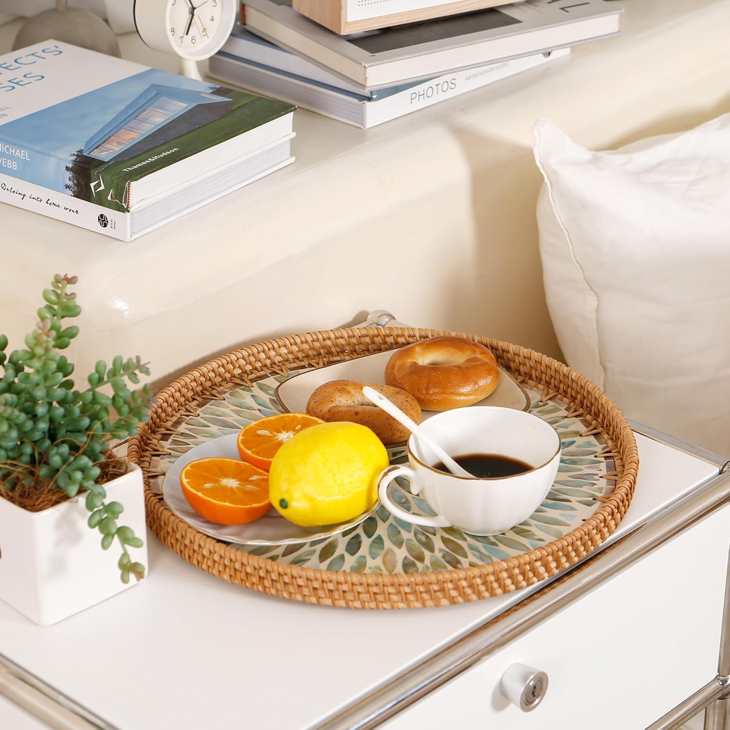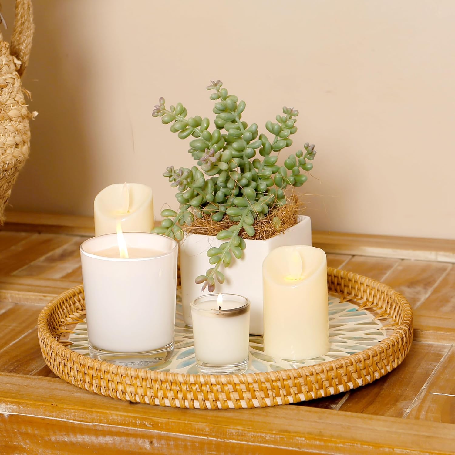 - Handwoven with Care: Each tray is carefully woven by skilled artisans, natural rattan texture and the subtle shine of seashells, reflecting a high level of craftsmanship and attention to detail