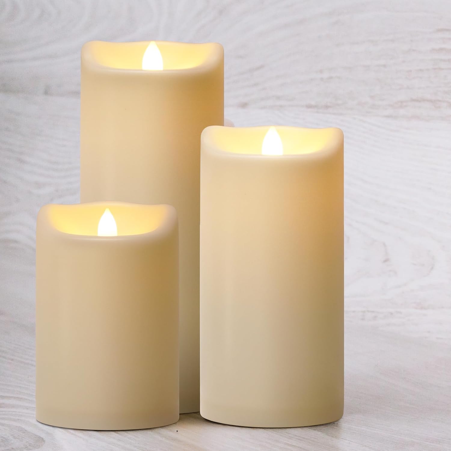 - Atmosphere Decoration and Gift: Our flameless pillar candles are suitable for both indoor and outdoor scenarios. It can be used for wedding, birthday, party, family gatherings, Christmas, Halloween, will create nice ambience and impress friends and families. Also suitable for fireplaces, bookshelves, lantern, garden,church, bedroom, bar, porch, patios and other occasions, the soft flashing light brings warmth to your heart