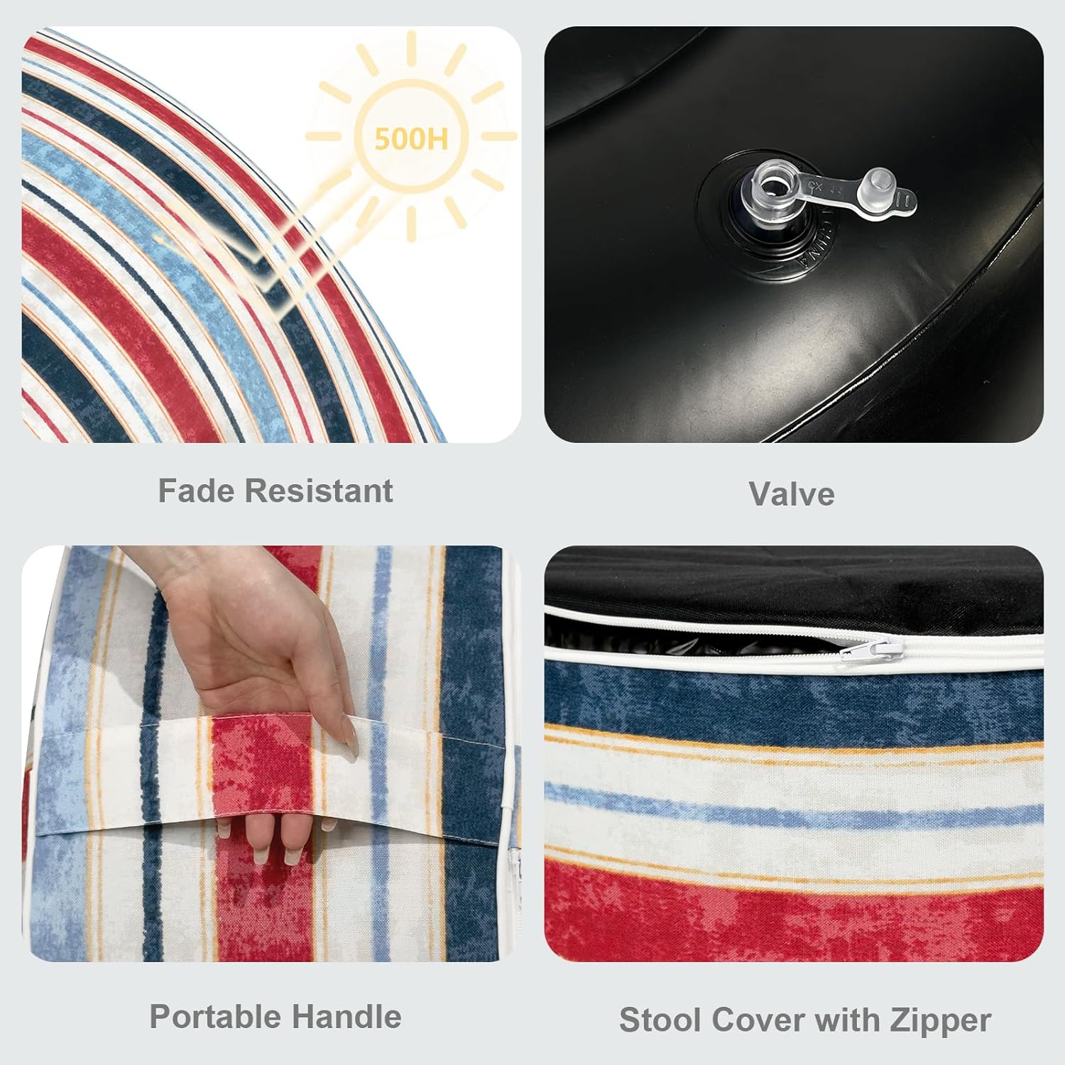 LVTXIII Inflatable Stool Ottoman Footrest with Handle, Decorative Fade-Resistant Foot Stool, Indoor or Outdoor Pouf for Home Garden and Camping Use, D21 x W 21 x H9, Stripe Red Blue