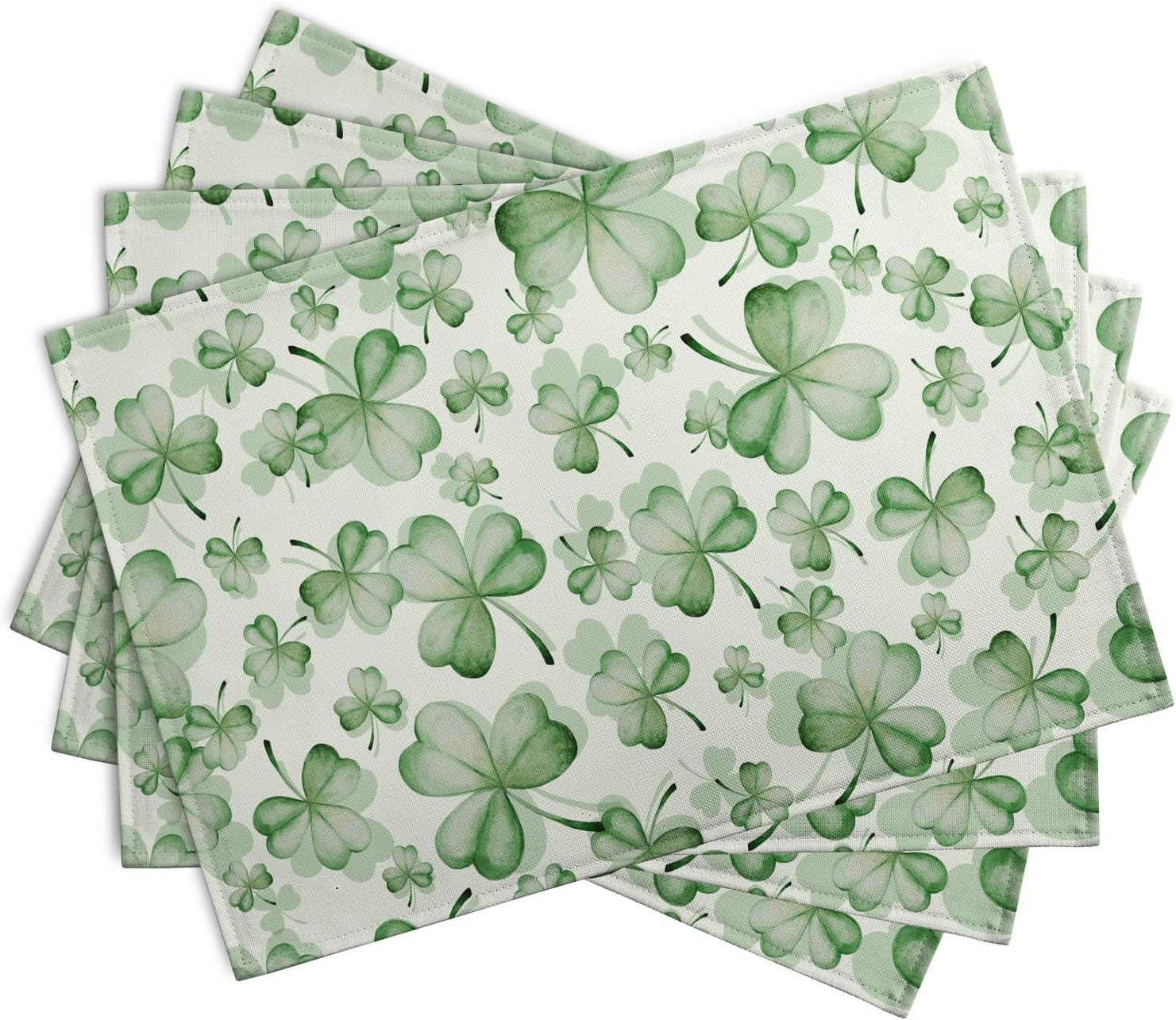 - TABLE DECORATION: Watercolor shamrocks St Patrick's Day decorative table placemats feature high-definition printing technology for crisp, clear patterns and vibrant colors; watercolor green placemats with a lucky clover pattern; unique and eye-catching seasonal patterns add charm to St. Patrick's Day placemats, creating a festive atmosphere for your party