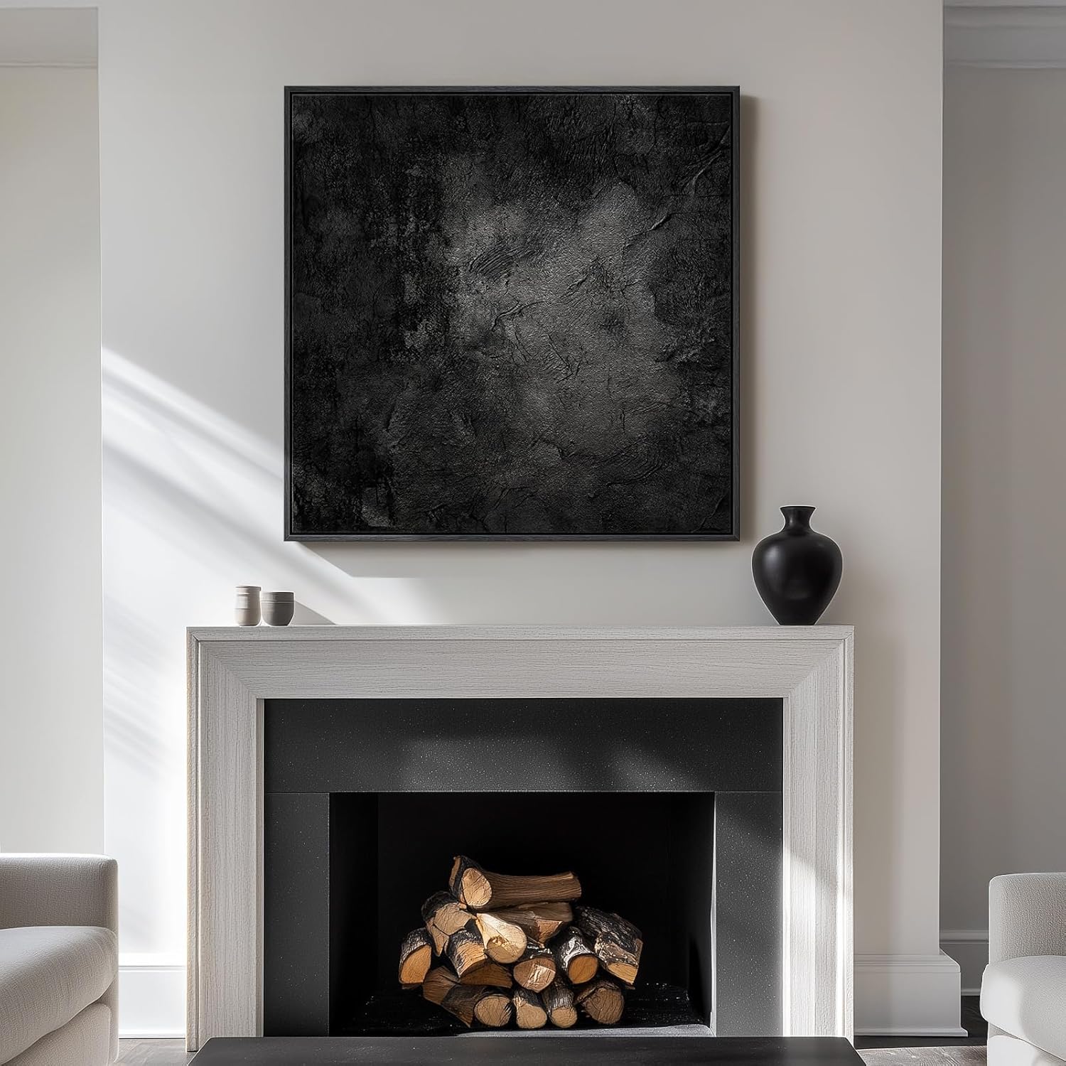 Framed Black Abstract Wall Art, Modern Canvas Prints Paintings Artwork for Walls, Square Minimalist All Black Pictures for Living Room, Hallway, Fireplace, Bedroom, Office, Bathroom Wall Decor