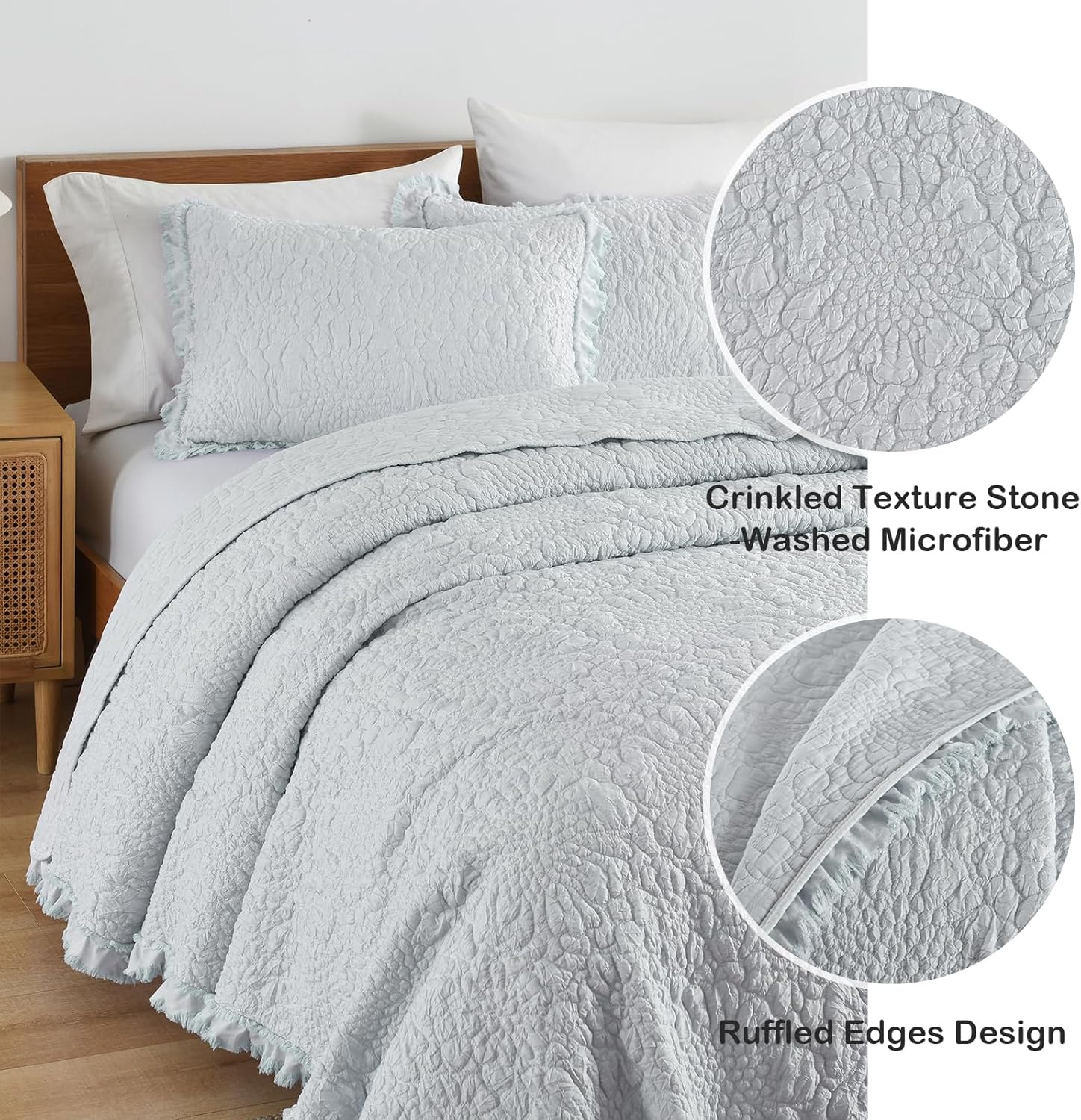 - Crinkled Texture & Stone-Washed Microfiber: This series quilt are stone-washed, which gives the fabric its soft and plush, pleasingly rumpled hand. Crinkled texture appearance add chic rustic look enhance bedroom's look.