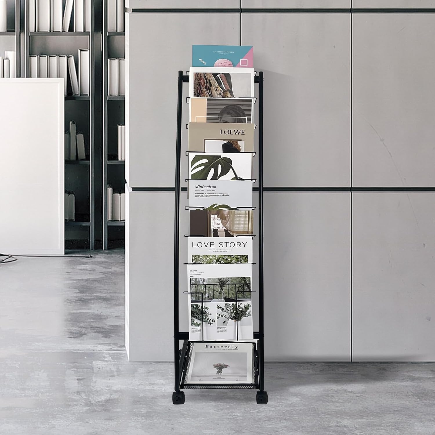 - Professional & Elegant Display – Featuring a sleek and modern design, this freestanding magazine rack enhances any space with a sophisticated and professional look, making it an ideal choice for showcasing magazines, brochures, and newspapers.