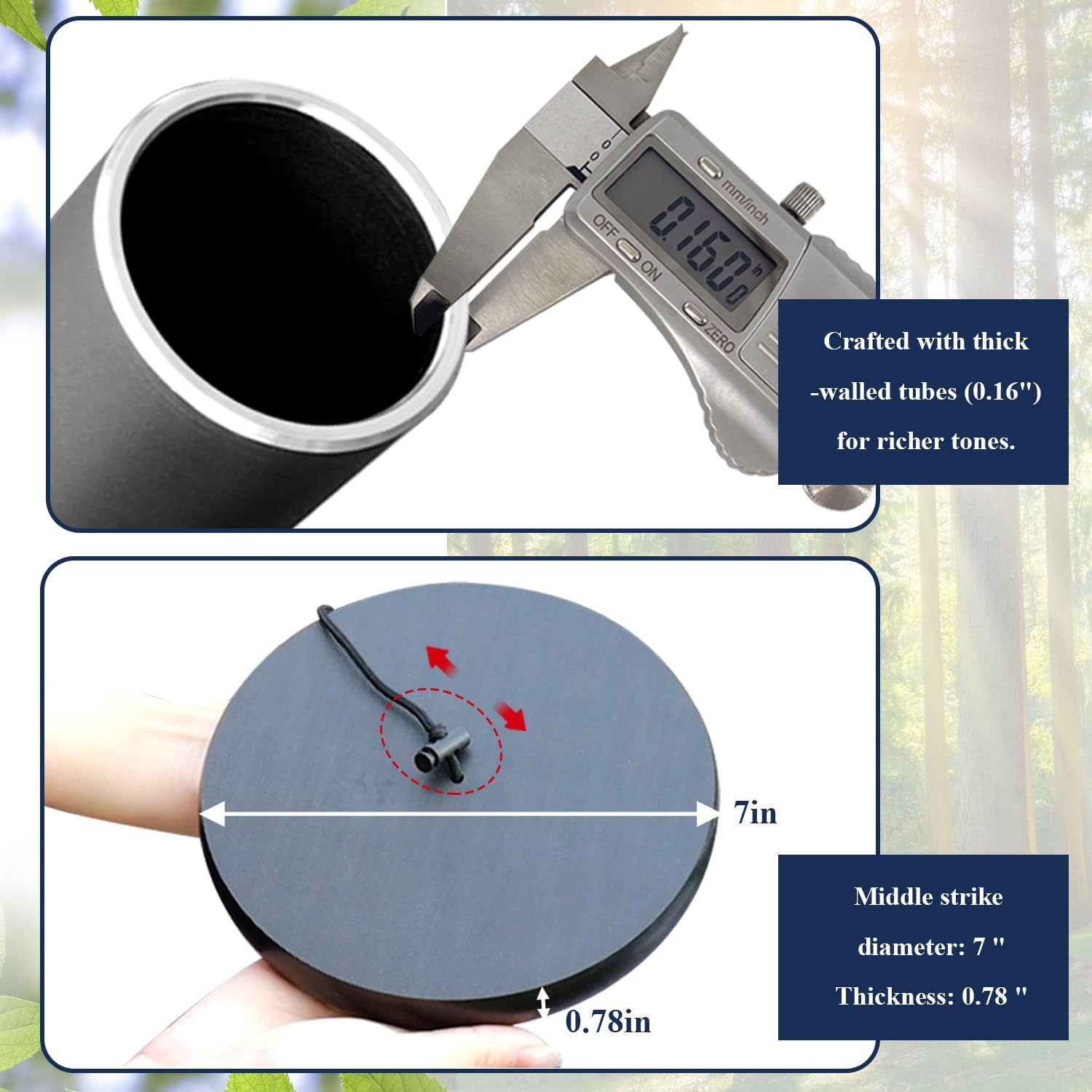 - 90 Inch large Wind Chimes - The longest tube of the large wind chimes is 53.54 Inch,diameter is 2.4 Inch.6 aluminum powder-coated tubes,every metal tube of this large wind chime is hand-tuned by our professional tuning experts to achieve a superior musical performance.Heavy duty nylon cording high density striker for a clear tone and resonances.