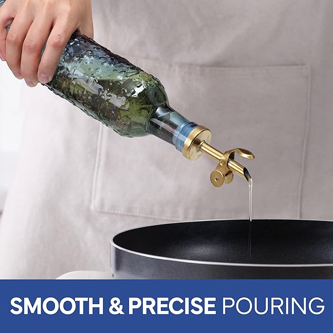 - Beautiful and Functional - Our colored glass oil dispensing bottles, with elegeant colors, gold tops and gold wire rack, will elevate your kitchen. Don't use just any oil bottle, upgrade the way you cook. That's our mission.