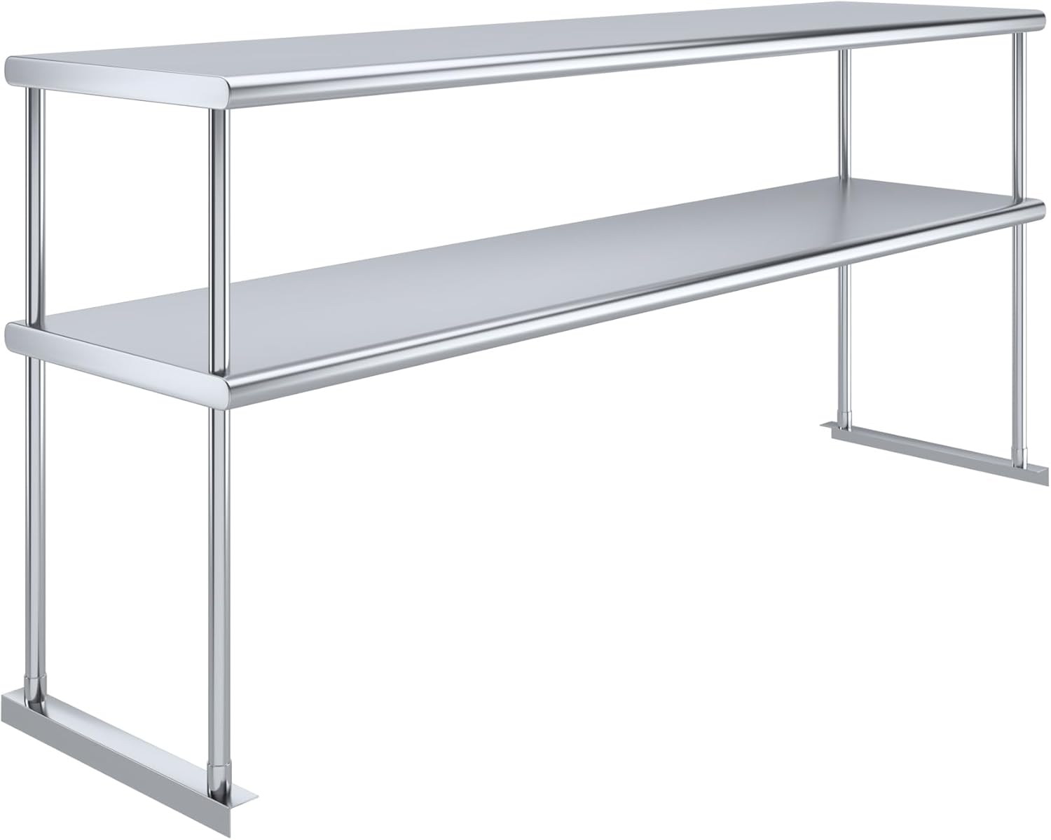 - 18 in. x 72 in. x 32 in. double-tier overshelf. Each tier holds up to 340 Lbs, providing robust support for heavy kitchen essentials.