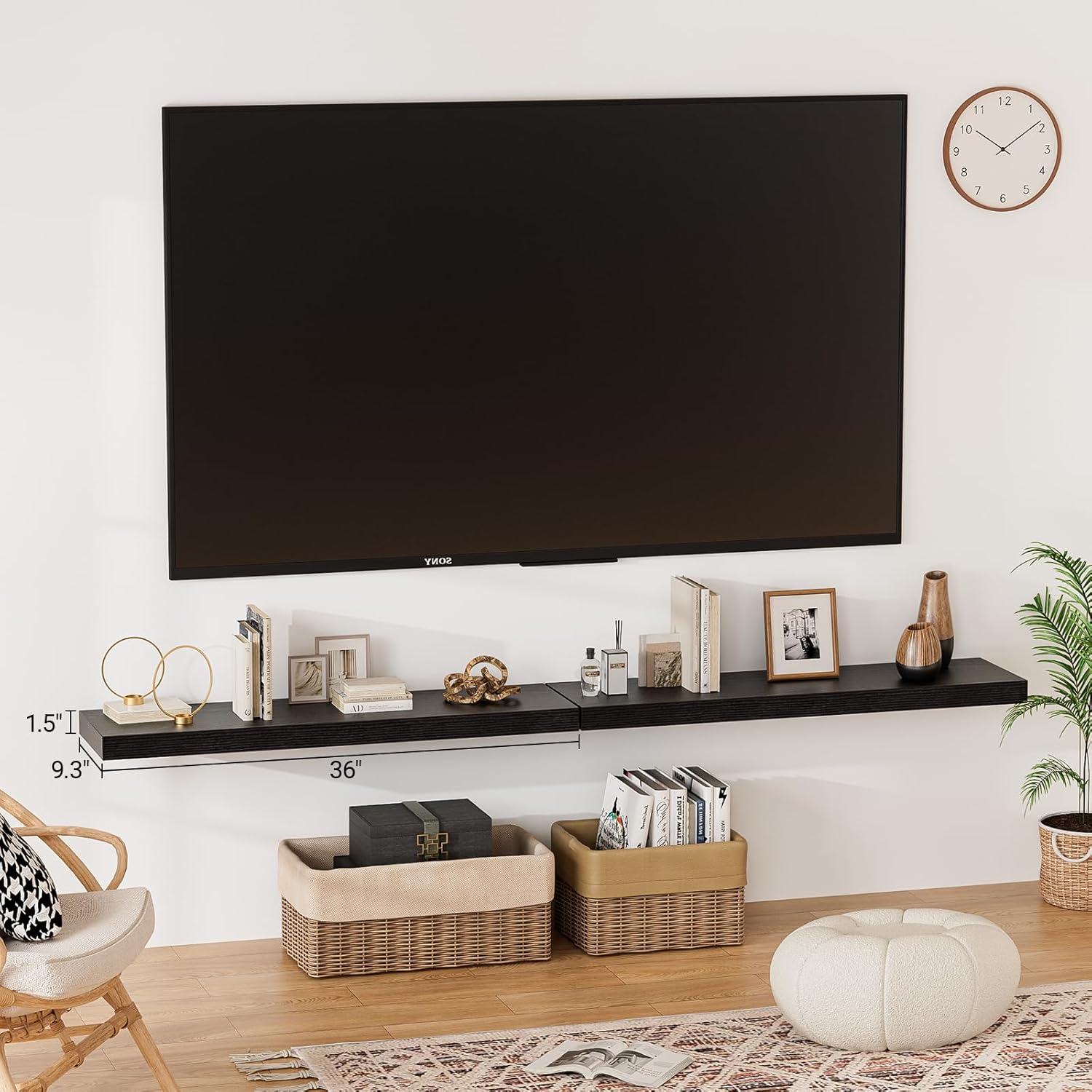 - 【Modern Rustic Look】Our 36 inch floating shelves for wall are made from durable engineered wood,which blends well with modern and rustic farmhouse wall decor alike.The black floating shelves is available in colors & sizes,perfect for storing books,plants,collectibles,etc..