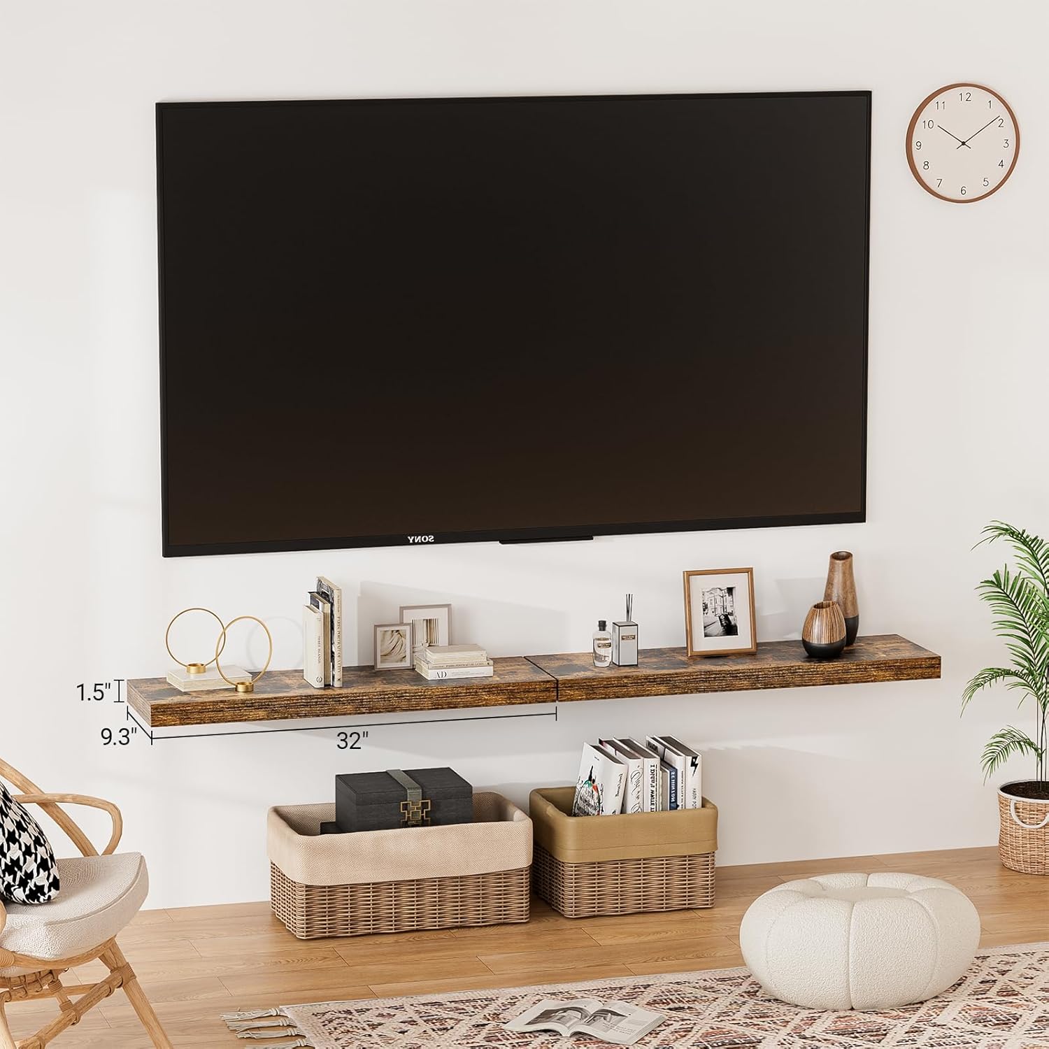 - 【Longer Design】Our pretty rustic brown floating shelves are 32"W x 9.3"D x 1.5"H.Our 32 floating shelves is longer than traditional designs and can hold more items.The brown floating shelves optimize wall space,helping organize essentials without taking up floor space in your home.
