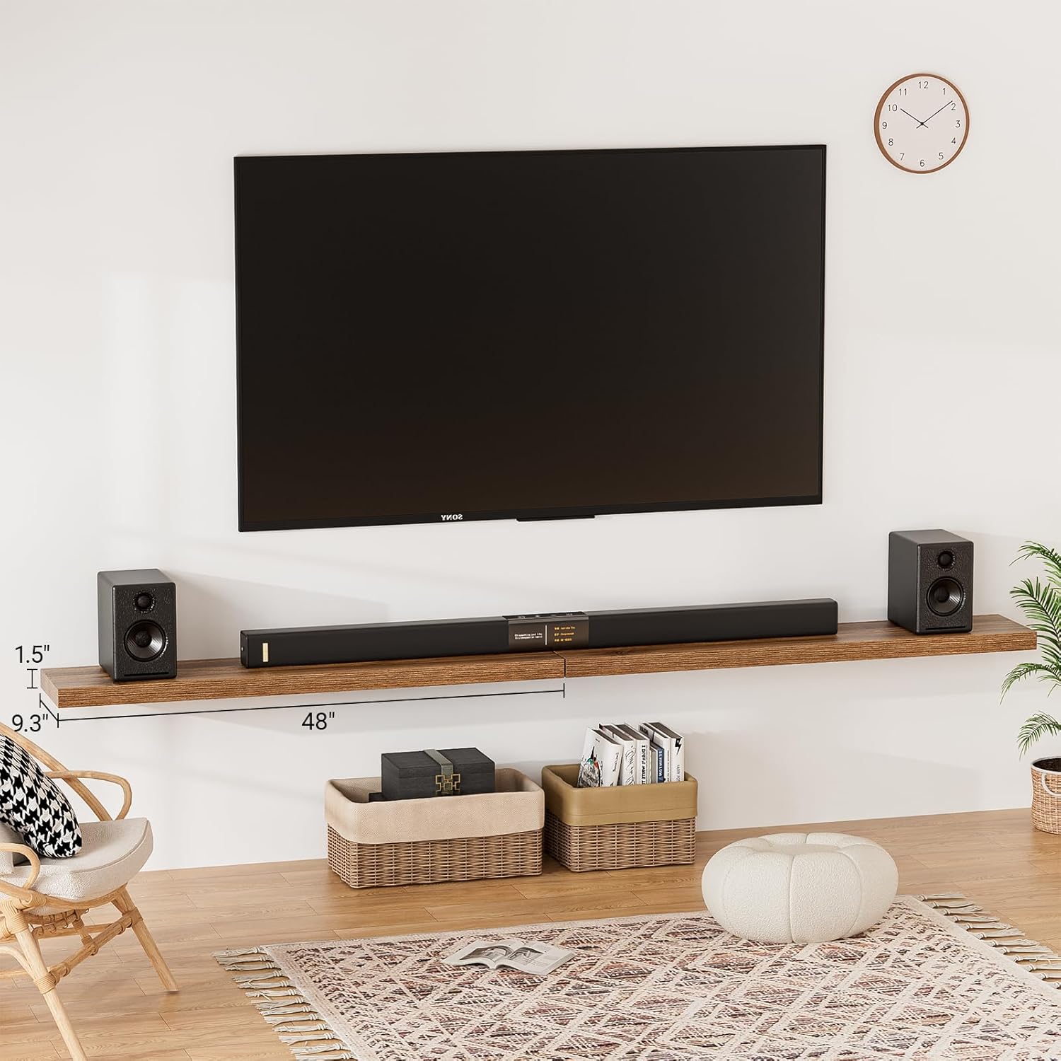 - 【Longer Design】Our pretty wall shelves are 48"W x 9.3"D x 1.5"H.Our walnut floating shelves is longer than traditional designs and can hold more items.The floating shelf optimize wall space,helping organize essentials without taking up floor space in your home.
