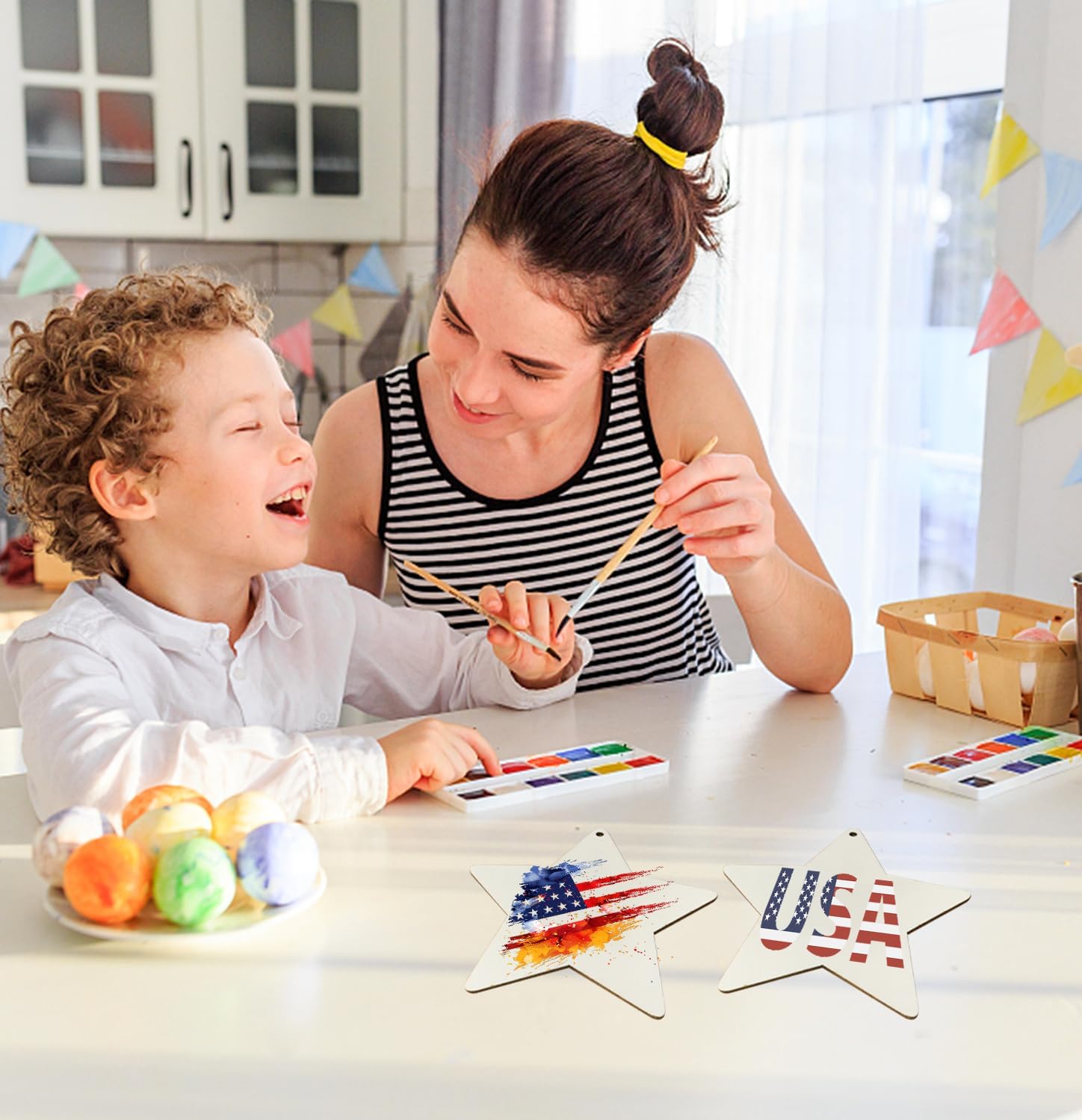 - ★【WIDE APPLICATION】:Our rustic wooden ornaments will provide you with delight and comfort. Traditional Holiday with interesting DIY Crafts indicate a festival way to add visual interest to the seasonal scene and vibrant colors enliven Christmas/Anniversaries/Weddings/Special Day decoration. Perfect for crafting unique wooden stars ornaments, making Independence Day crafts, and creating cherished memories