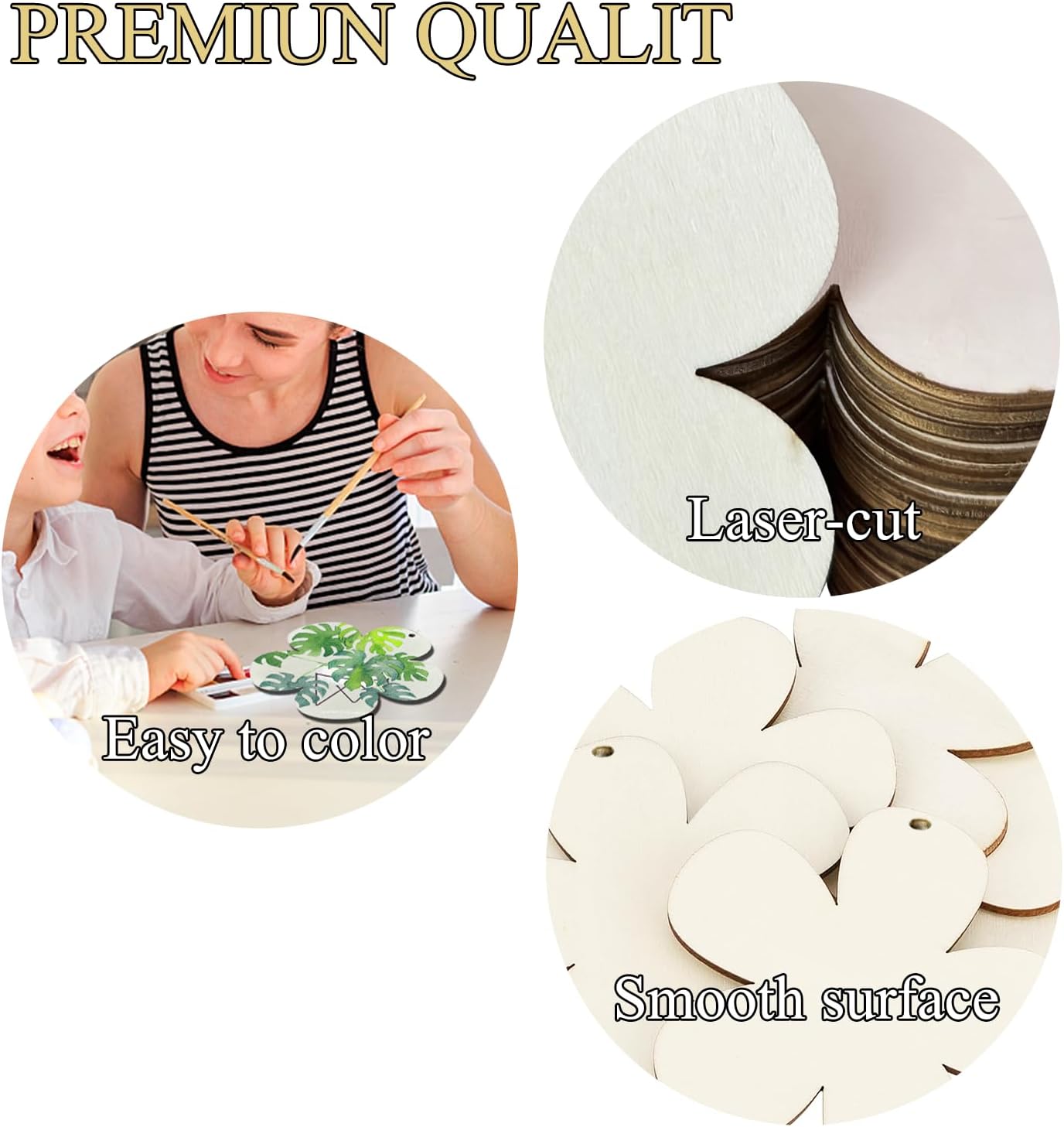 - ✿【EASY TO USE】: Easy to write or paint. Every wooden flower slice features a small hole that can be threaded with string, ribbon, or lace for you to hang easily, creating a vintage and rustic look for your home decor, and spring ornaments. Perfect Ornaments for St.patrick's/Spring crafts, just paint and decorate them to make a unique ornament you can use year after year