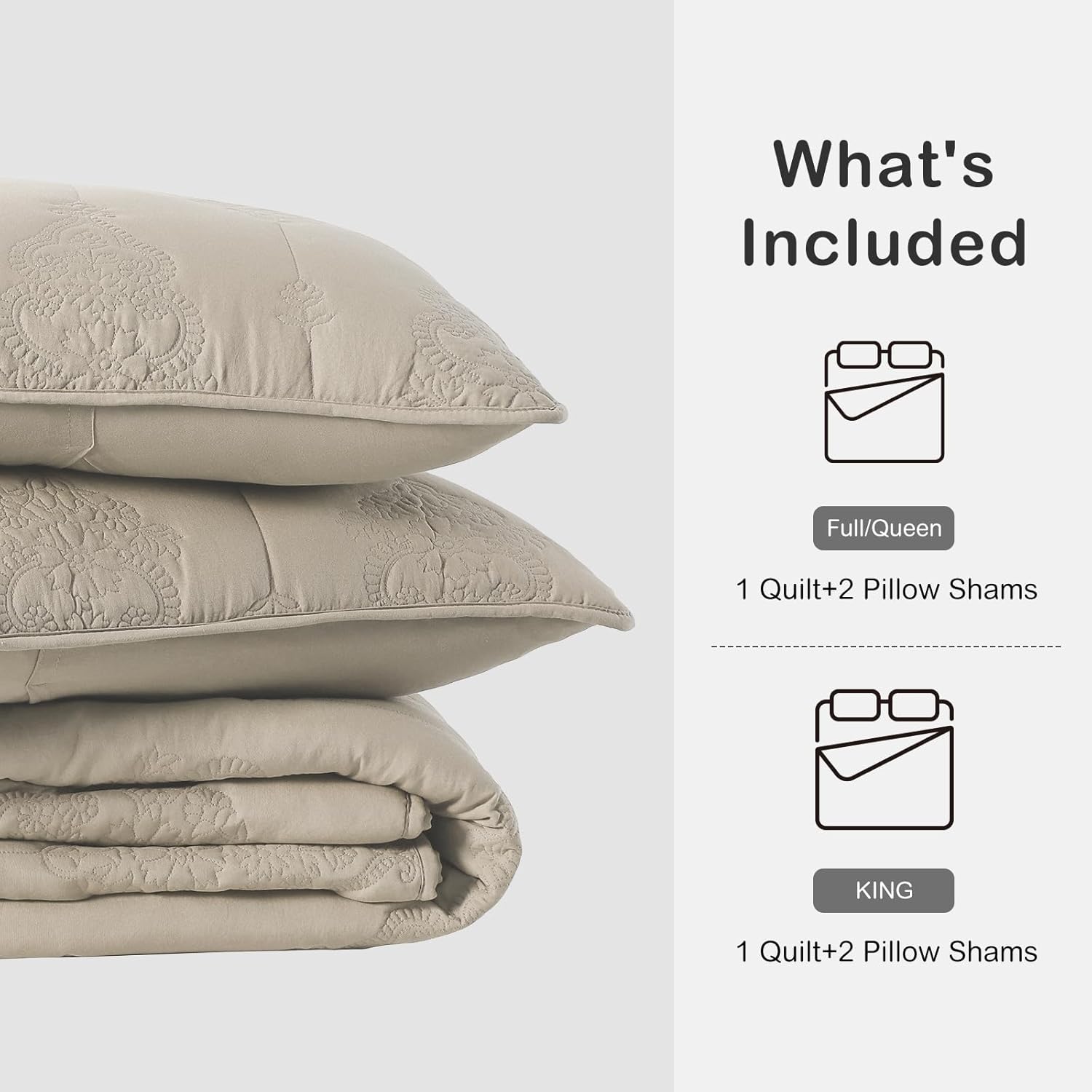 - Soft Pre-Washed Microfiber: This series quilt are crafted from 100% microfiber polyester, skin friendly, lightweight for cozy feeling.Moreover, through the Pre-washed process, these quilts get soften after every wash.