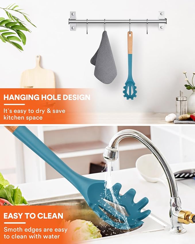 - Just Want To Provide The Best For You : The soft food-grade silicone head is designed for noise-free cooking. Unique sawtooth design, easy to pick up noodles. Whether it is used for stirring or serving spaghetti. Our silicone pasta fork will add more fun to your kitchen