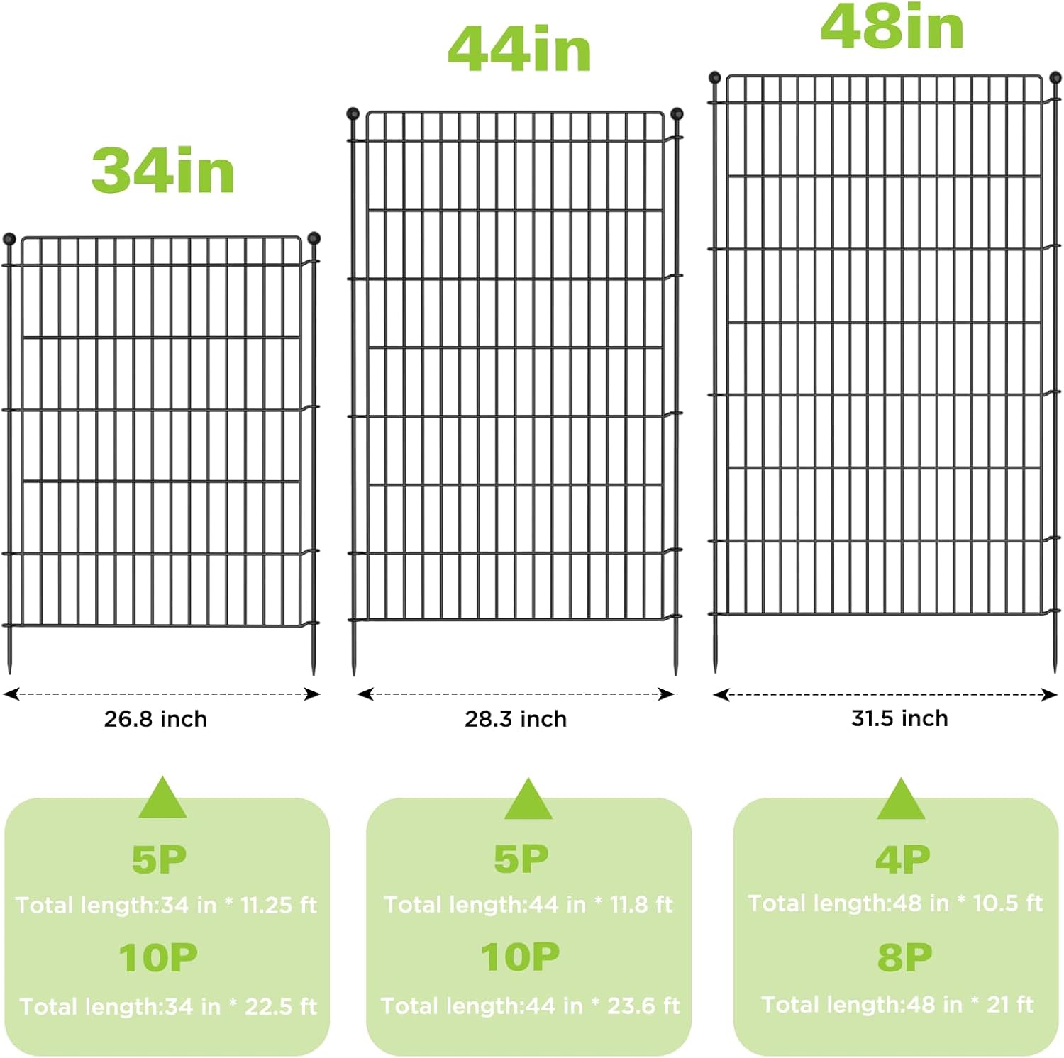 5 Panels No Dig Garden Fence with Gate, 44in(H) × 11.8ft(L) Decorative Metal Outdoor Dog Fence, Rustproof Pet Fencing for Yard, Patio, Flower Bed -Temporary Fencing| Easy to Install