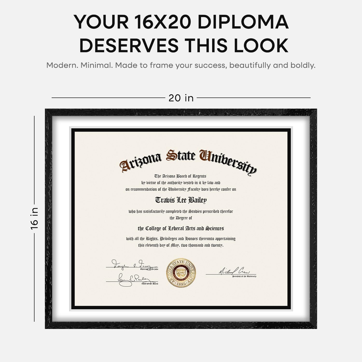 Homeforia 16x20 Diploma Black Wood Frame, High End Oak 16 x 20 Certificate Frames with Mat 14 x 17, 16by20 Document Frame Matted to 14by17, Wooden Graduation Frames, Tempered Glass, Wall Kit, Set of 1