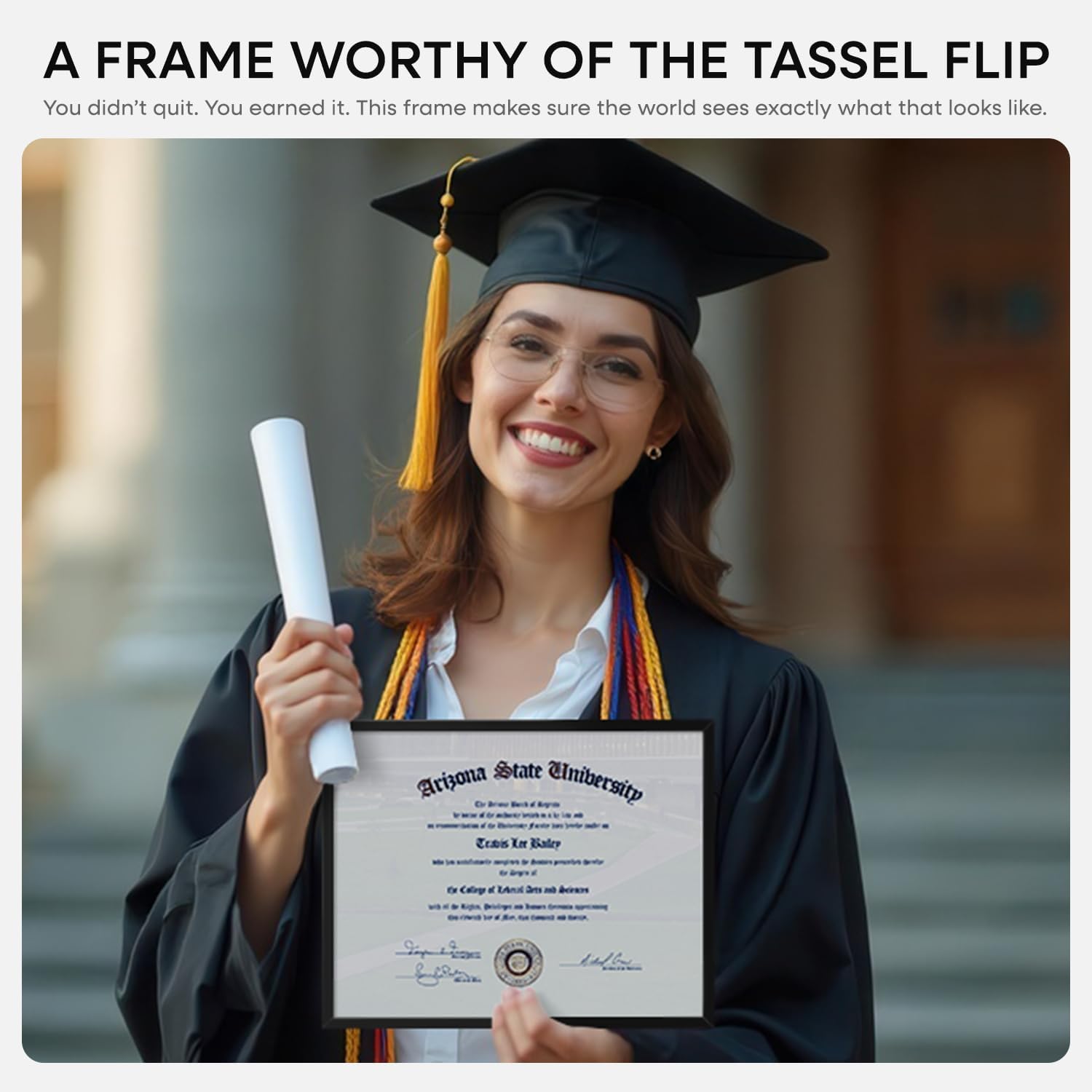 Homeforia Black Diploma Frame 8.5 x 11, High End Metal 8.5x11 Certificate Frames, 11x8.5 inch Document Frame for Wall or Tabletop, 8.5 by 11 Award Letter Size Frame, Tempered Glass, Wall Kit, Set of 1