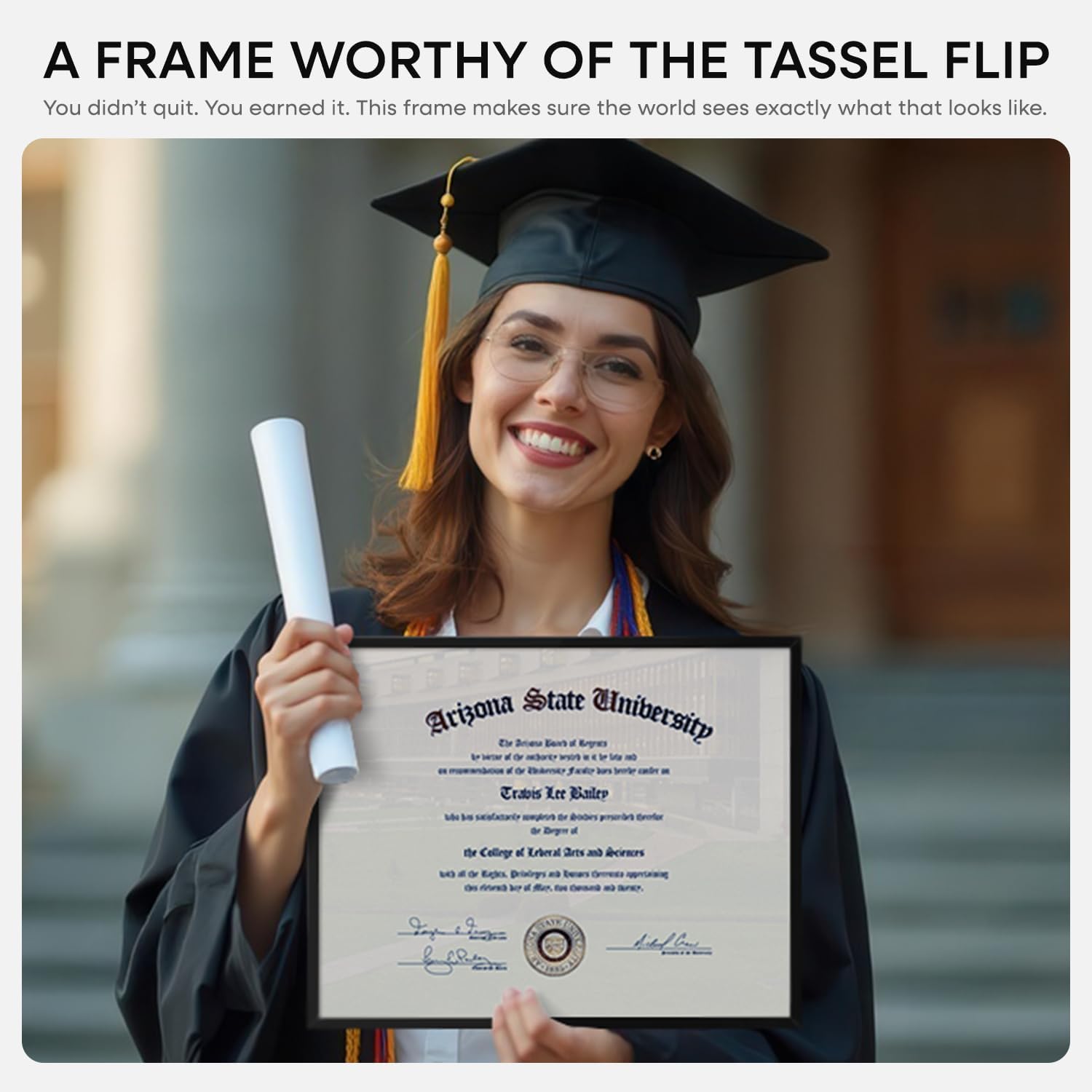 Homeforia 11x14 Diploma Frame Black, High End Metal 11 x 14 Certificate Frame with Mat 8.5 x 11 inch, 14x11 Document Frame Matted to 8.5x11, Award Graduation Frames, Tempered Glass, Wall Kit, Set of 1