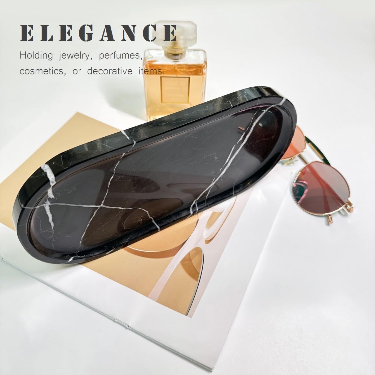 - NATURAL MARBLE FROM CHINA: Made from premium Black Root marble sourced in Guangxi, China. This marble oval tray showcases striking black-and-white natural veins, making each piece unique. A durable luxury stone tray that is stain-resistant, long-lasting, and perfect as a decorative tray for jewelry, perfume, or candles